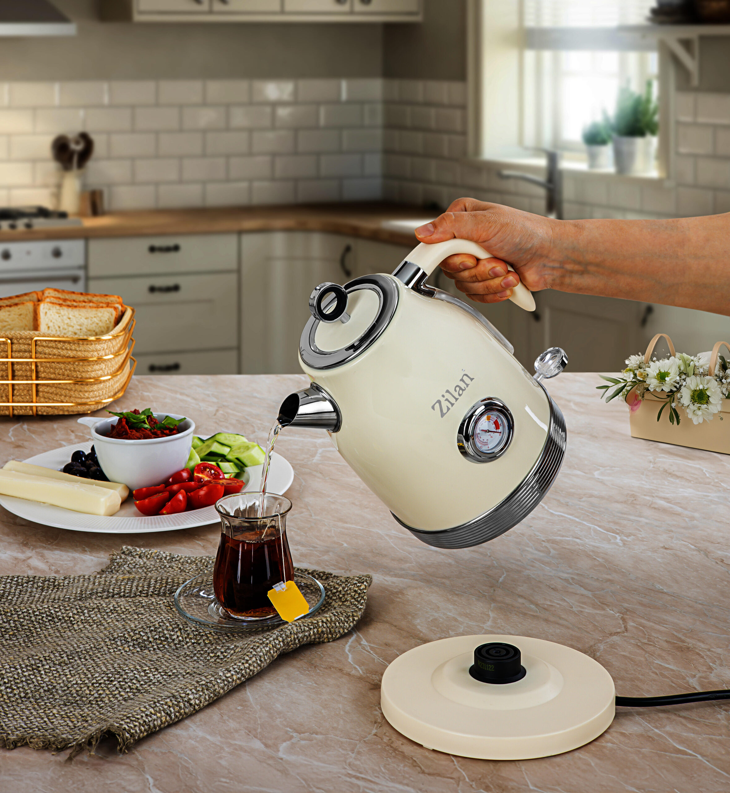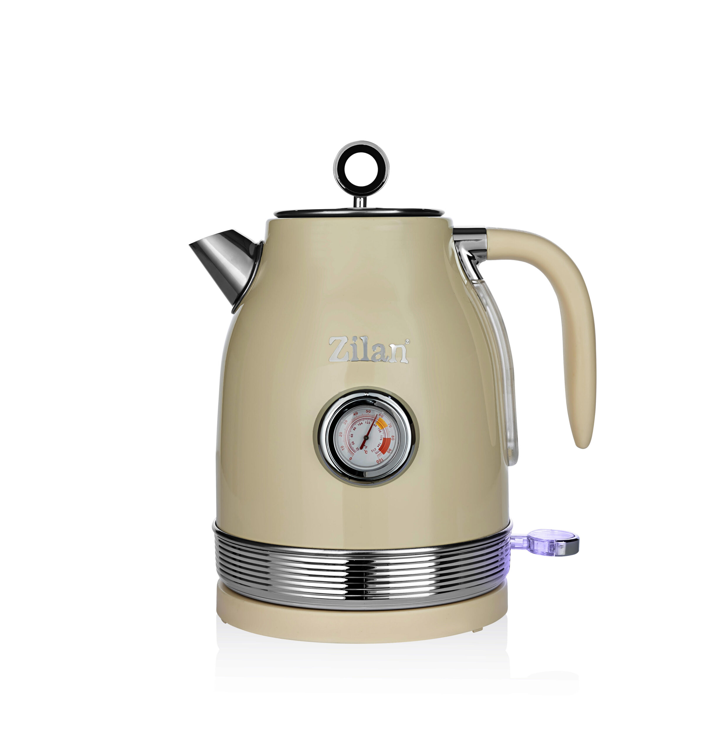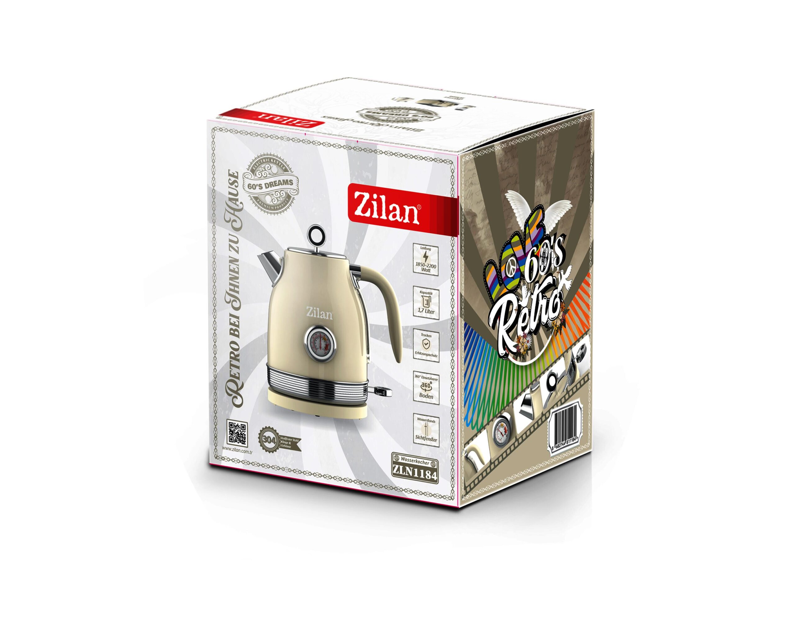 Fierbatorul electric Retro Zilan ZLN1184 dispune de o capacitate de 1.7L si o putere mare de 1850 – 2200W. Fierbatorul are protectie la fierbere uscata. Elemenetii de incalzire ai fierbatorului sunt ascunzi pentru un design mai placut. Fierbatorul a fost construit cu ideea de a fi un produs ergonomic, acesta are o baza detasabila. Fierbatorul poate fi folosit rotindu-se la360°, fara sa fiti incomodati de cablul de alimentare al fierbatorului.Fierbatorul dispune de un indicator luminos construit pentru a observa atunci cand acesta se alimenteaza si este pus in functiune. De asemenea acesta are oprire automata/manuala. De asemenea produsul are construita o fereastra pentru a observa nivelul apei din fierbator.SpecificatiiPutere1850-2200WCapacitate1.7LFunctiiProtectie fierbere uscata, ON/OFF automat sau manual, Indicator luminos, Baza detasabila360°, Elementi incalzire ascunsi.