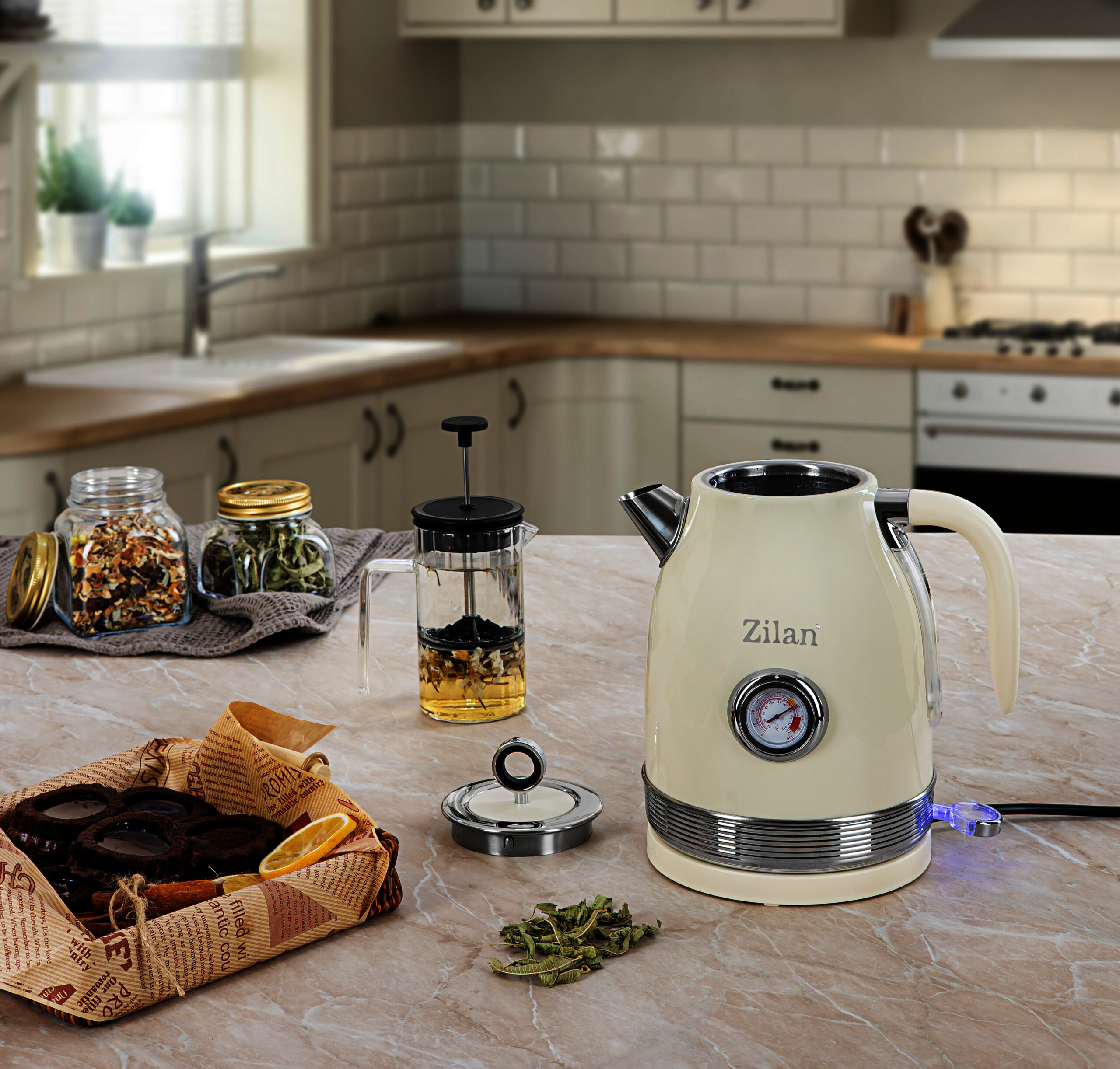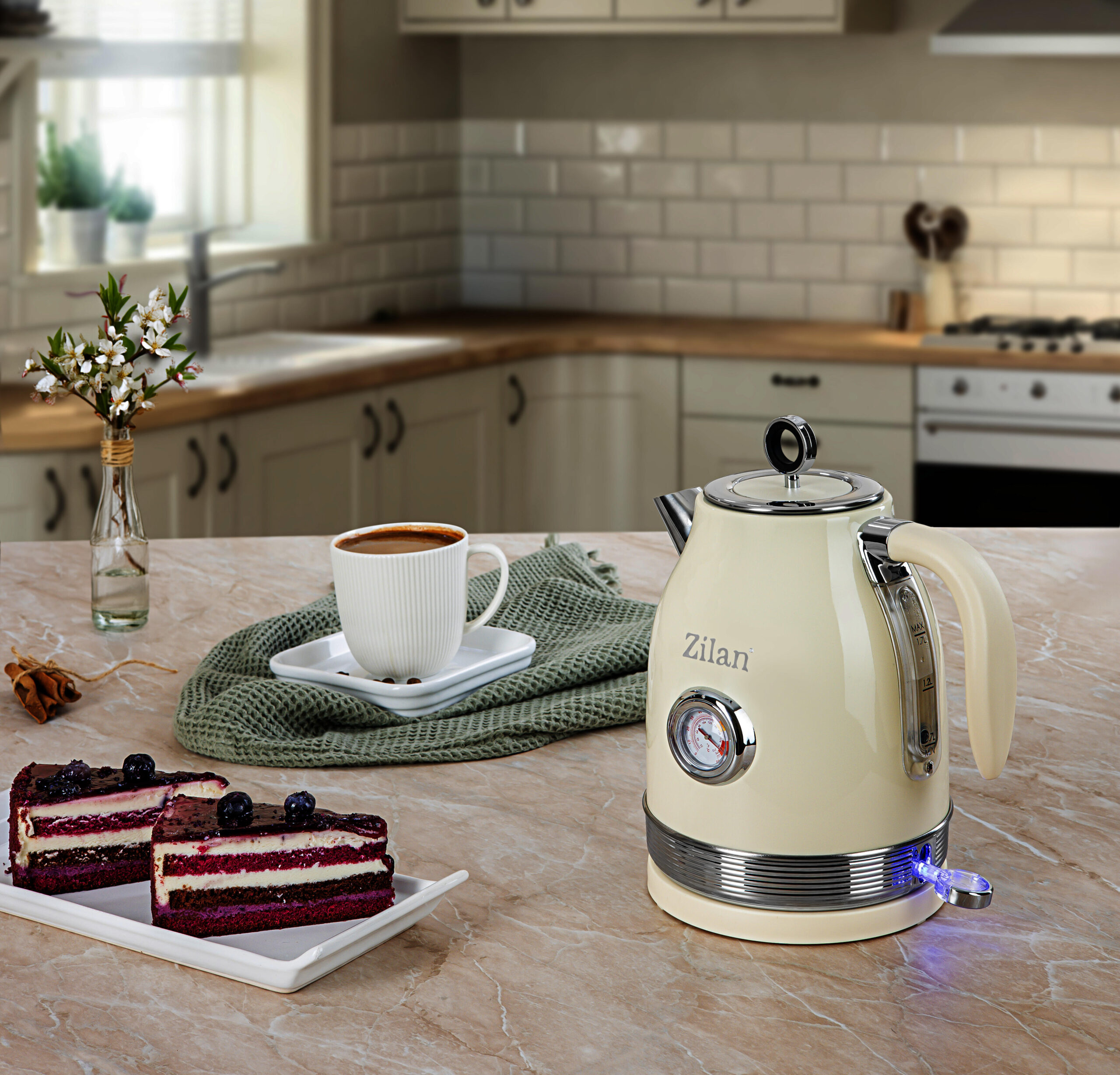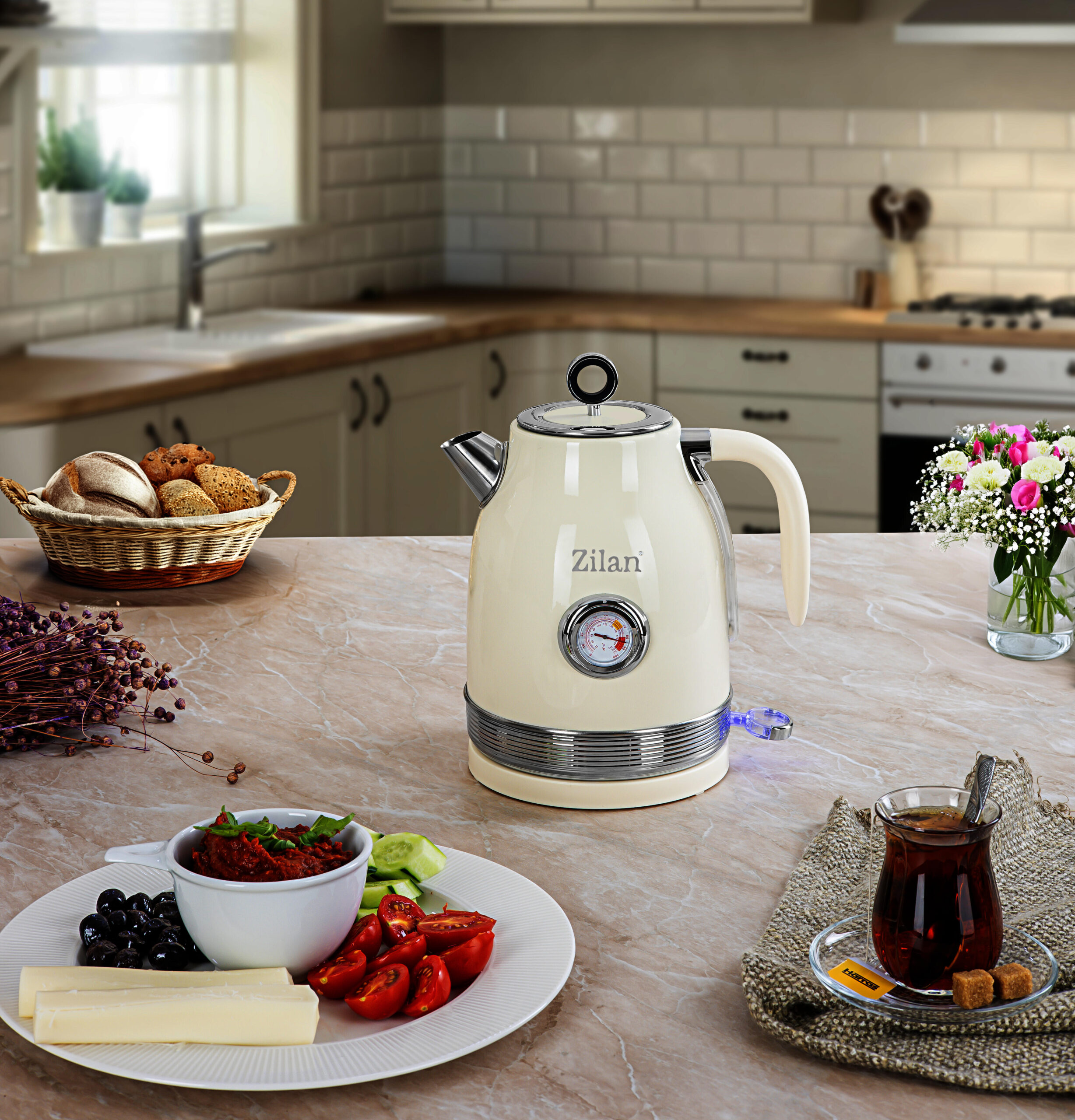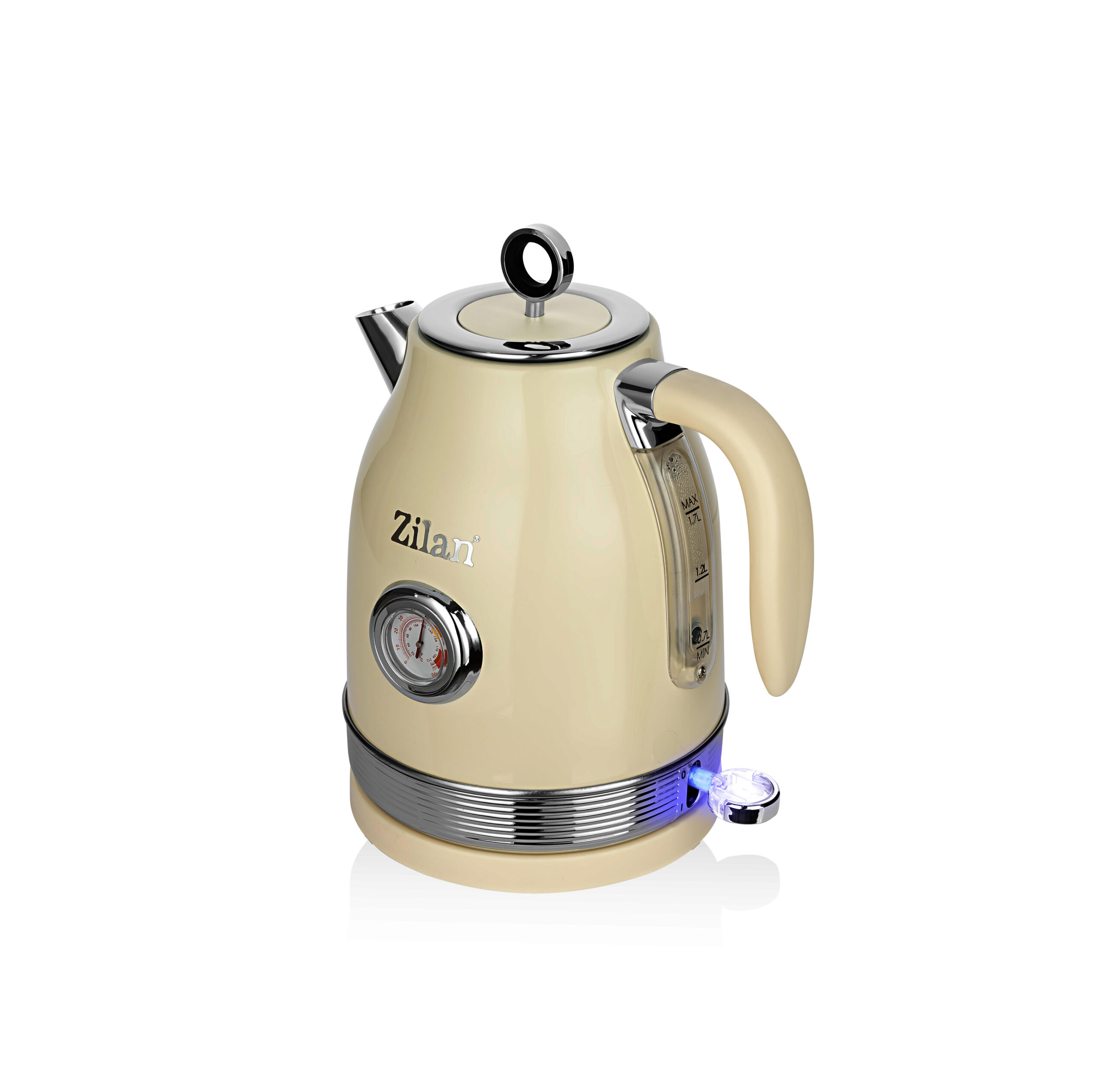 Fierbatorul electric Retro Zilan ZLN1184 dispune de o capacitate de 1.7L si o putere mare de 1850 – 2200W. Fierbatorul are protectie la fierbere uscata. Elemenetii de incalzire ai fierbatorului sunt ascunzi pentru un design mai placut. Fierbatorul a fost construit cu ideea de a fi un produs ergonomic, acesta are o baza detasabila. Fierbatorul poate fi folosit rotindu-se la360°, fara sa fiti incomodati de cablul de alimentare al fierbatorului.Fierbatorul dispune de un indicator luminos construit pentru a observa atunci cand acesta se alimenteaza si este pus in functiune. De asemenea acesta are oprire automata/manuala. De asemenea produsul are construita o fereastra pentru a observa nivelul apei din fierbator.SpecificatiiPutere1850-2200WCapacitate1.7LFunctiiProtectie fierbere uscata, ON/OFF automat sau manual, Indicator luminos, Baza detasabila360°, Elementi incalzire ascunsi.