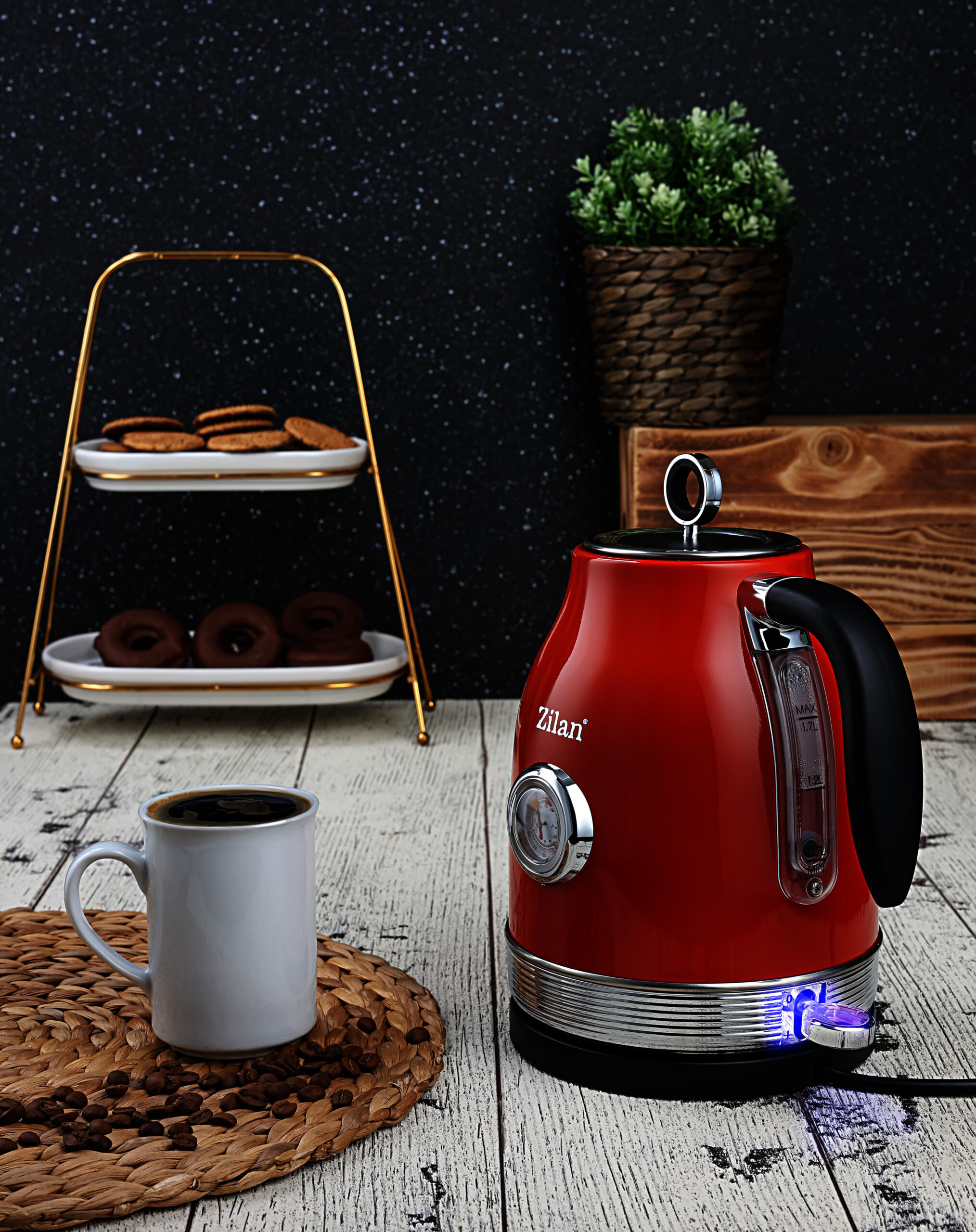 SERIA ZILAN RETROBucura-te de noua serie RETRO marca Zilan. Venim cu aceasta seria de dragul vremurilor trecute care candva, ne audceau zambetul pe buza din lucruri marunte.Caracteristici:Putere: 2200WCapacitate: 1.7 LitriProtectie impotriva uscariiRotativ 360Indicator de temperaturaIndicator luminosOprire automataDimensiuni:Inaltime: 20 cmDiametru: 16 cmCablu: 70 cm