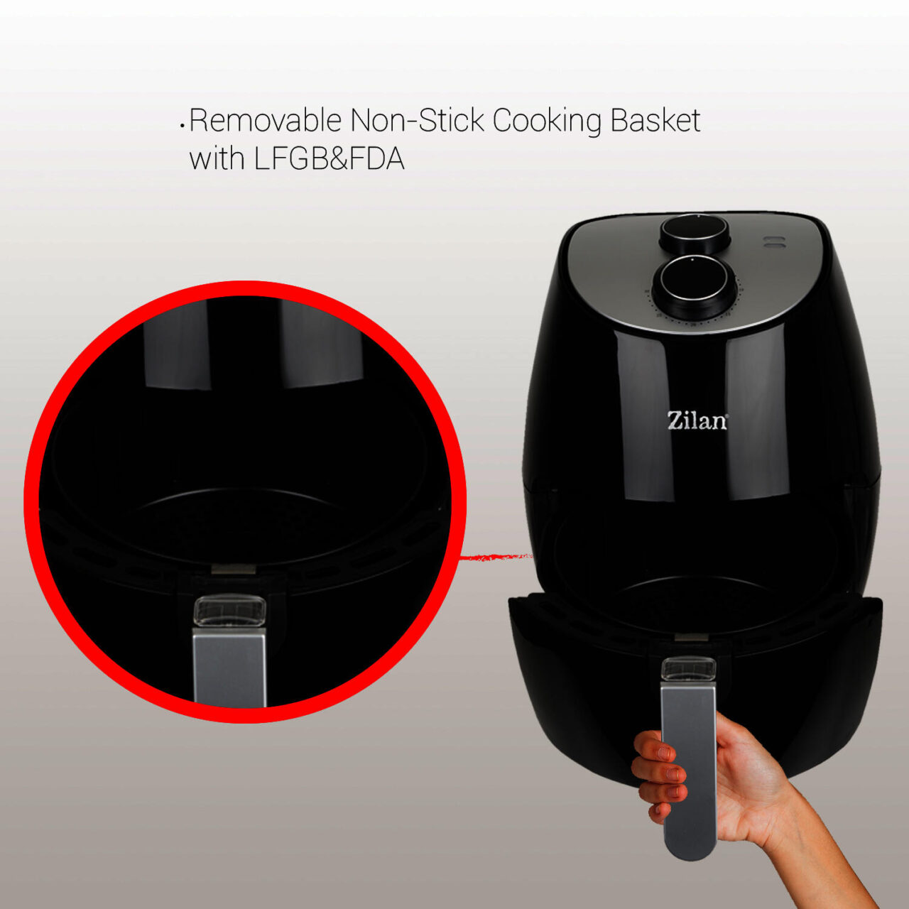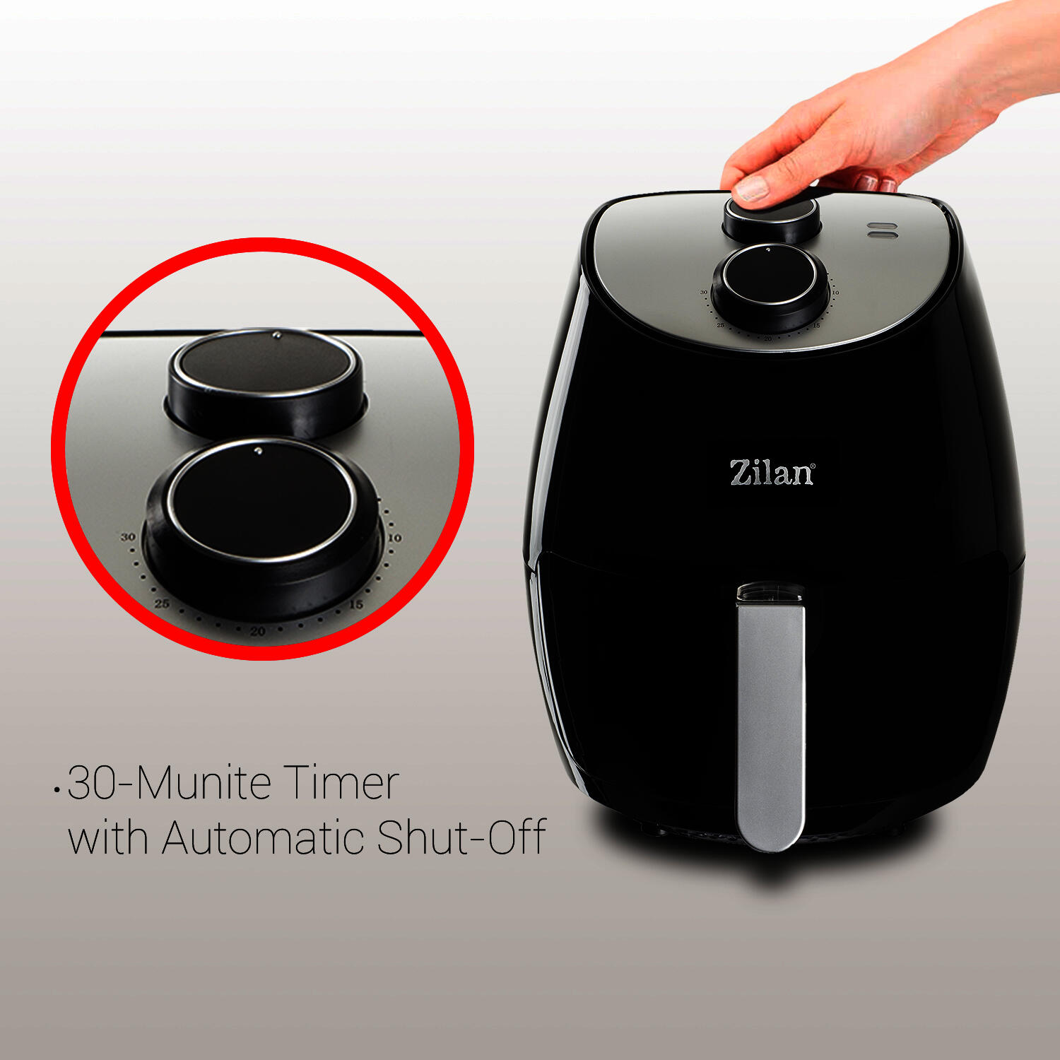 Friteuza Air Fryer, ZILAN ZLN-3598, Negru 1350 W, Capacitate 2.6 L, Timer 30 min,