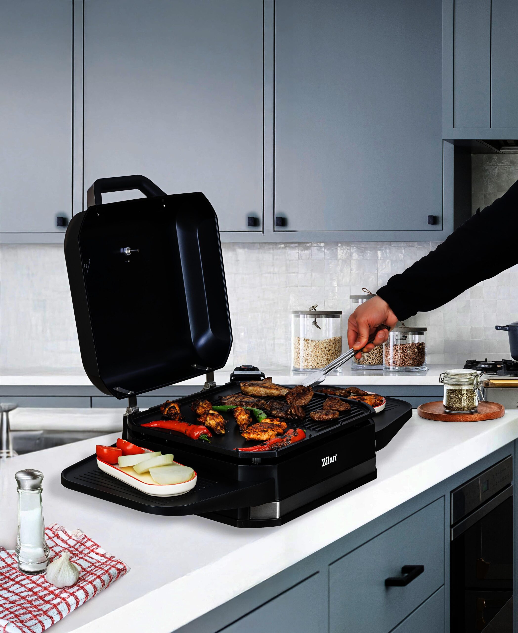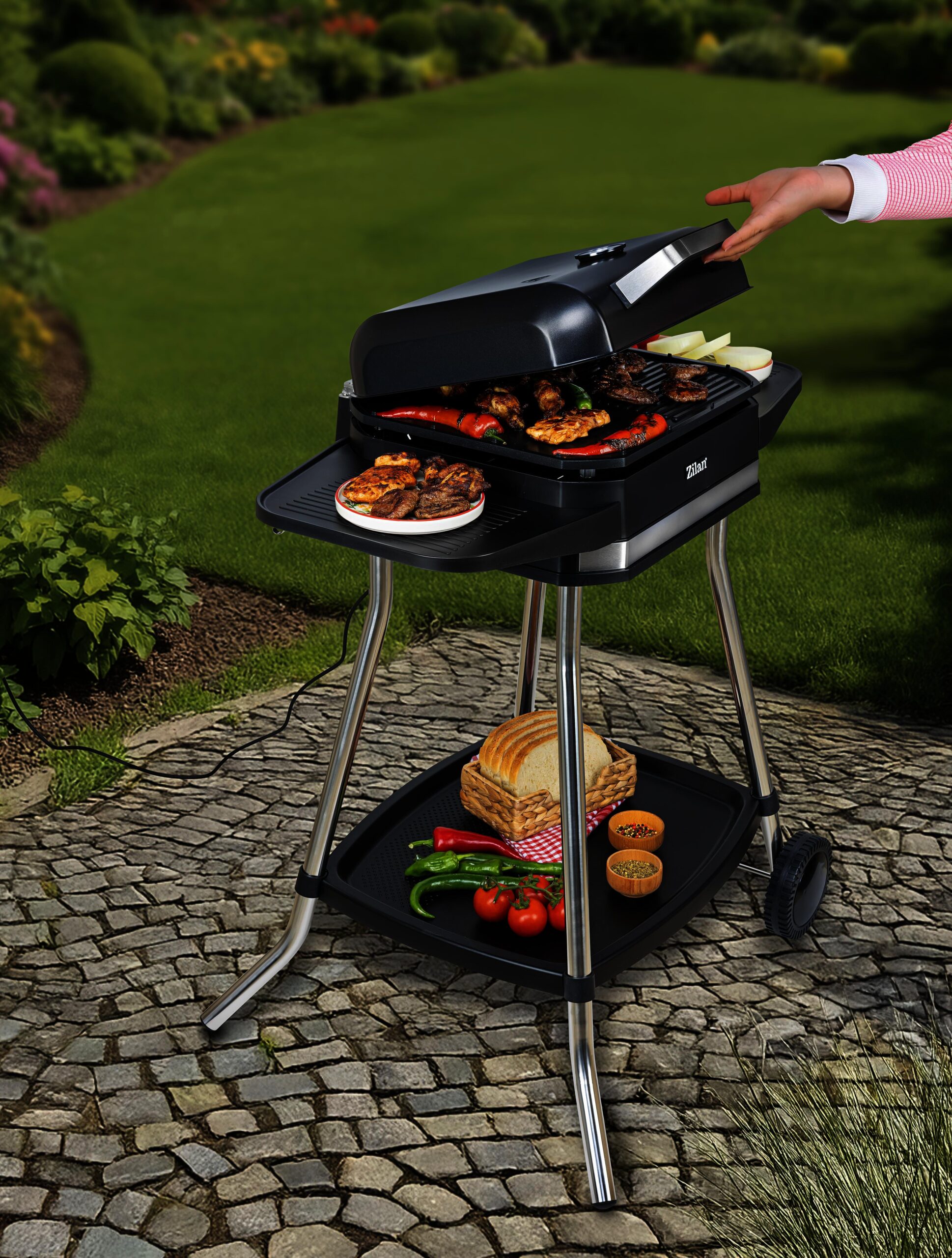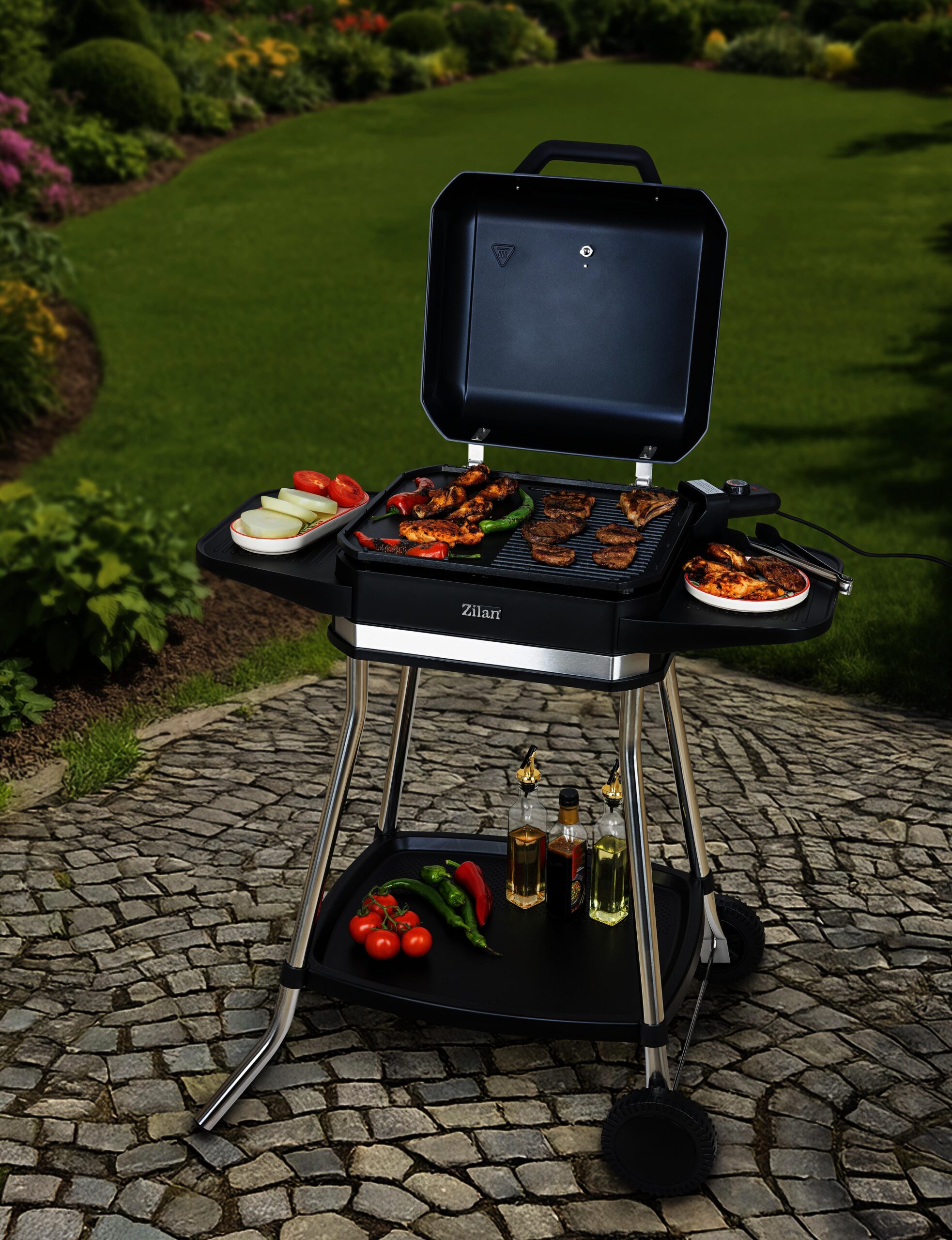 Gratarul electric Zilan ZLN2501 este potrivit pentru utilizare in interior sau exterior, acesta are o putere de 2562-3050W. Placa de gratar este din aluminiu turnat ( 41,8 cm x 37,3 cm ). Gratarul beneficiaza de un termostat reglabil cu 3 trepte ( scazut, mediu si inalt ). Termometru integrat pentru o supraveghere optima a mancarii. Protectie impotriva supraincalzirii.Gratarul are capac cu balama cu protectie impotriva vantului si stropirii. Gratarul electric are picioare din otel inoxidabil, doua aripi de suport pentru o capacitate mai mare de depozitare si cutie de colectare a uleiului.Gratarul electric Zilan ZLN2501 este usor de folosit si usor de curatat datorita materialelor si tehnologiilor folosite la producerea acestuia.