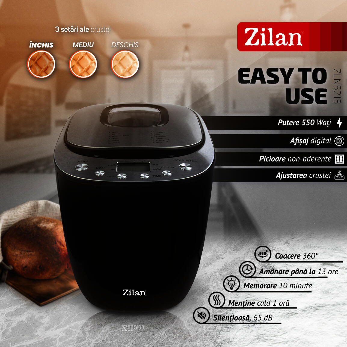 Masina de facut paine Zilan ZLN5213 Negru, putere 550W, ecran digital, coacere ajustabila