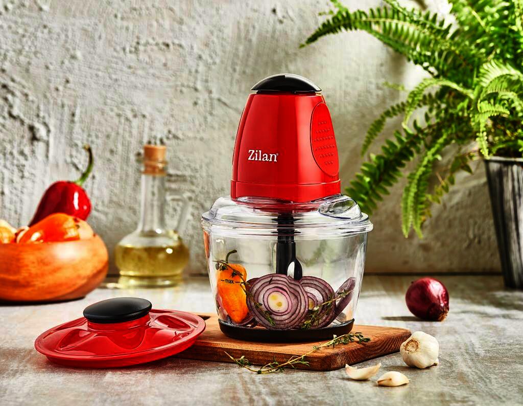 Mini tocator Zilan ZLN5619 Rosu, putere 200W, capacitate 1L, vas din sticla