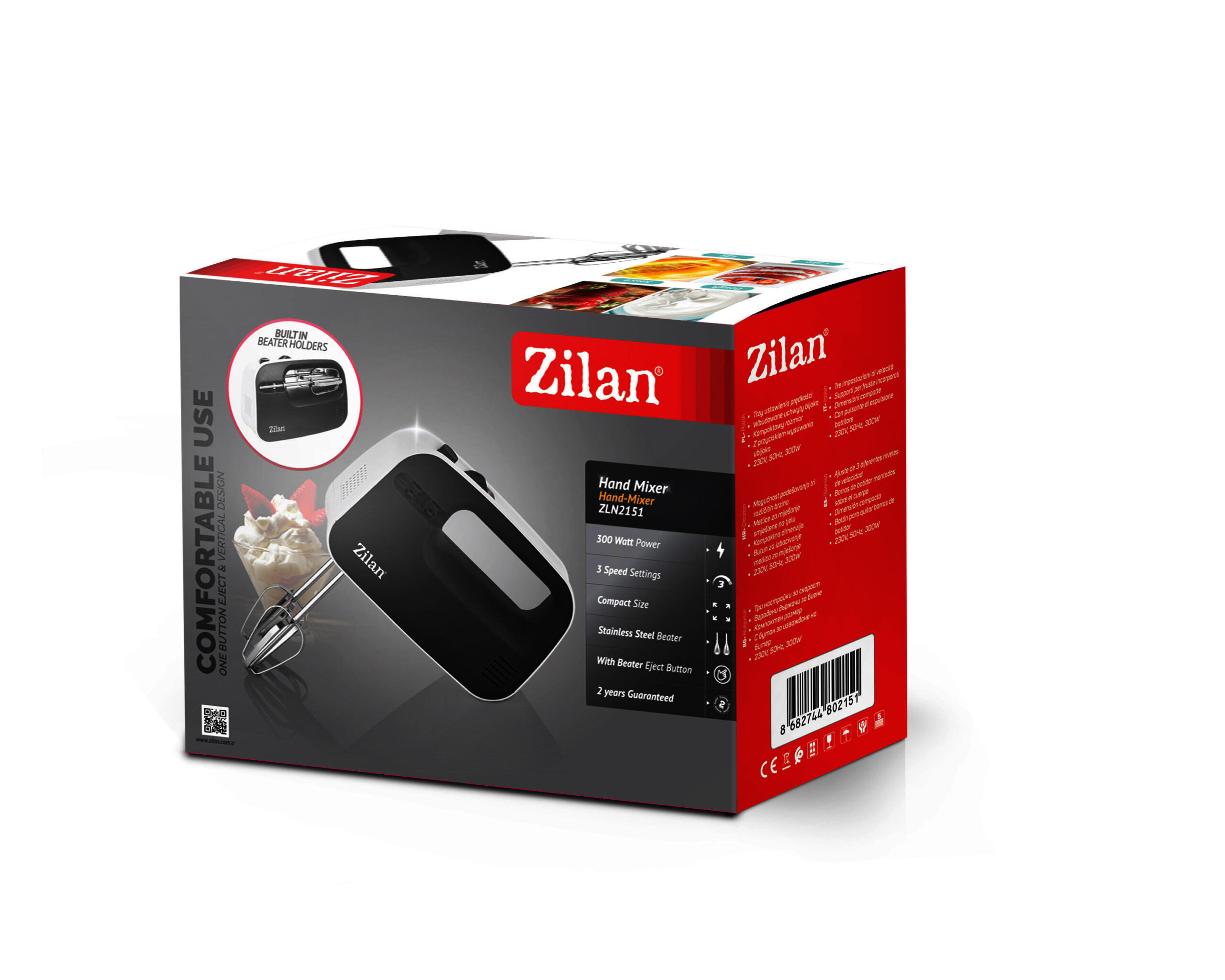 Mixer de mana ZIlan ZLN2151 Negru, 3 nivele de viteza, compact, 300W
