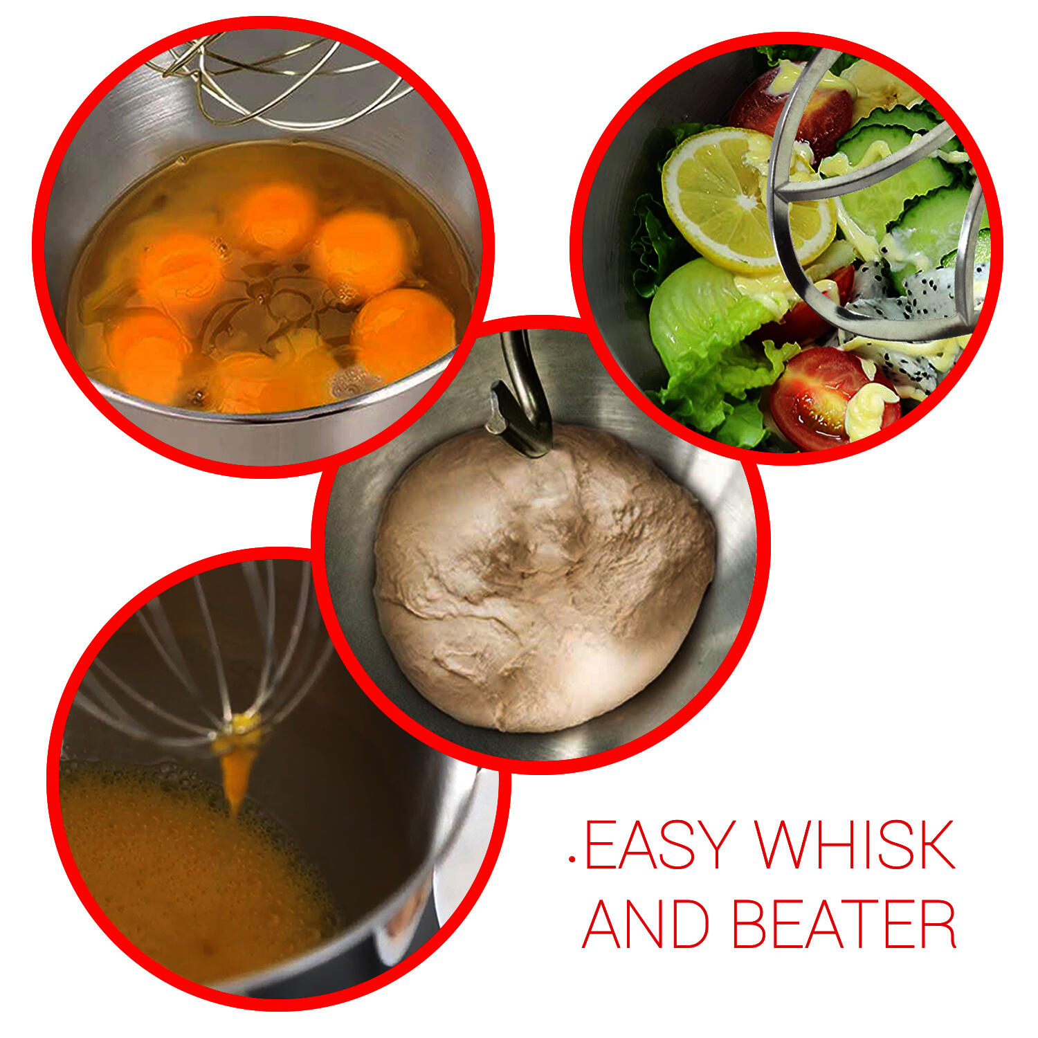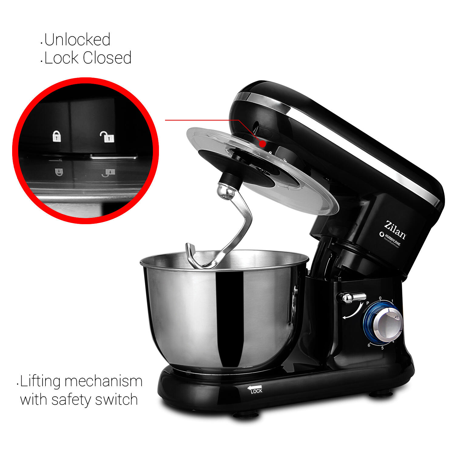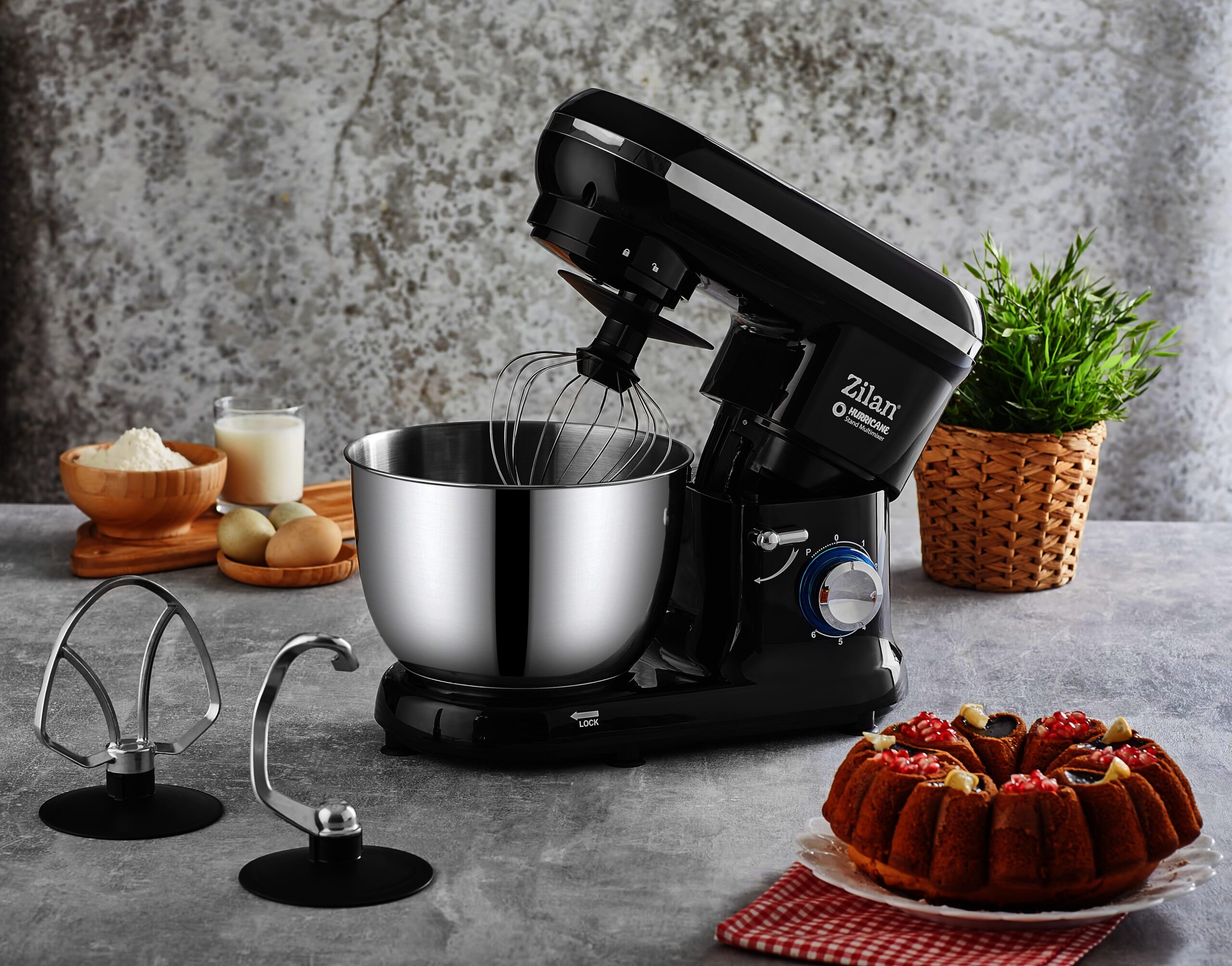 Multi mixer Hurricane ZLN3185 cu actiune de mixare planetara, corp din ABS si bol din inox cu capacitate de 4,5L. Dotat cu buton rotativ de comanda in 6 trepte + functie Puls, mecanism de ridicare cu buton de siguranta si indicator LED pentru functionare. Caracteristici : – Putere : 1000W ; – Tensiune/frecventa de functionare : 220-240 V / 50-60 Hz.CARACTERISTICI GENERALEUtilizareRezidentialTip produsMixer cu bolCapacitate bol4.5 lMaterial bolInoxFunctiiPasare
