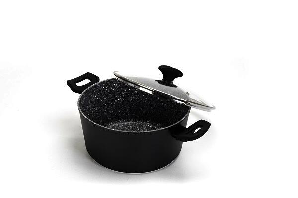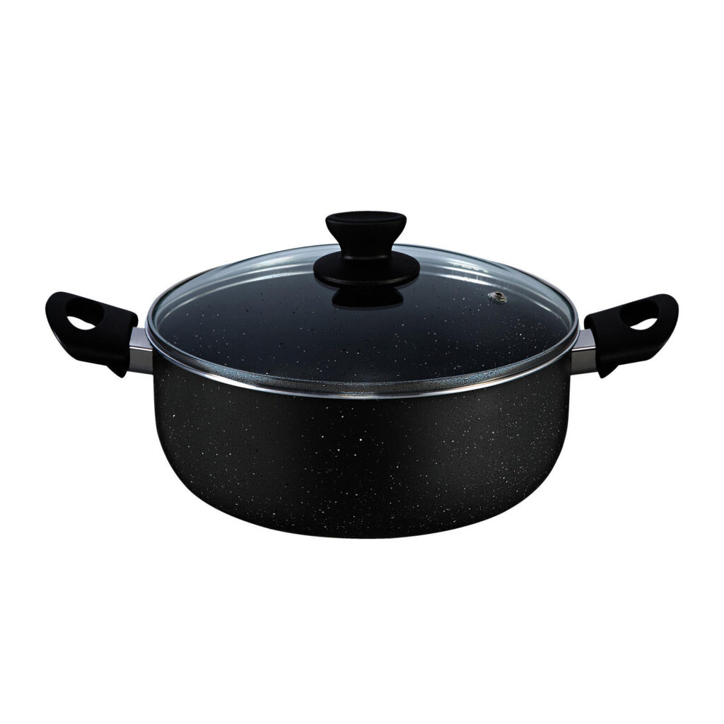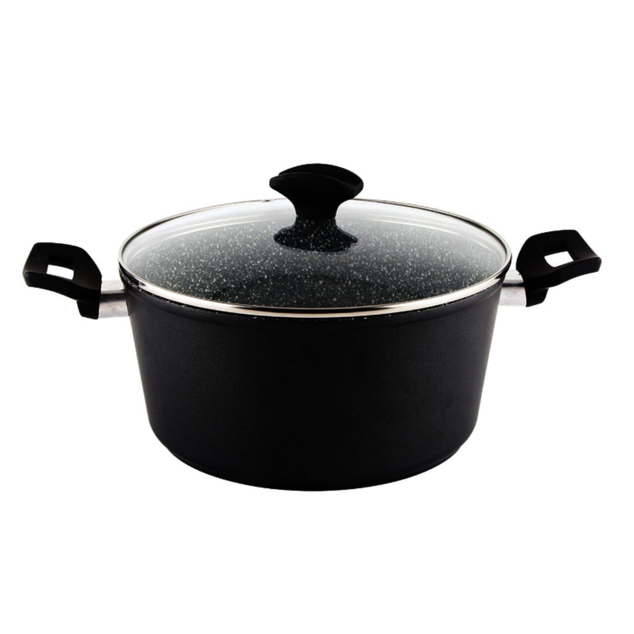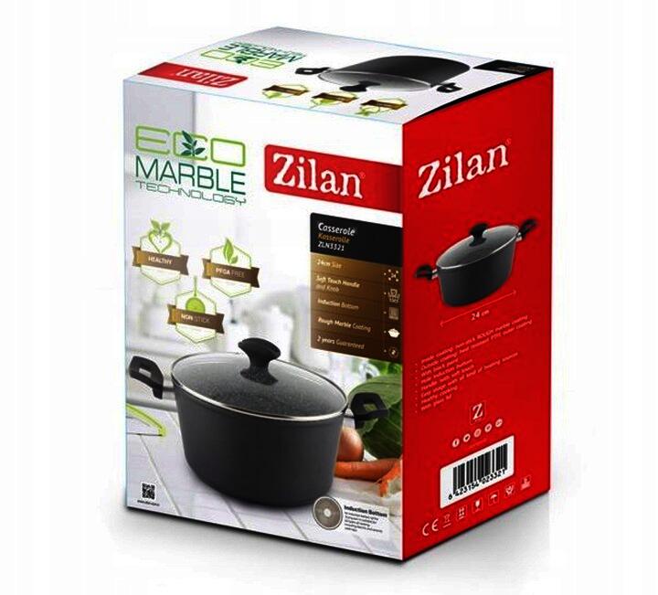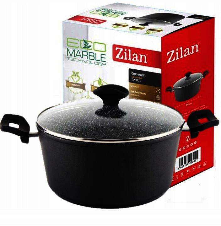 Oala cu capac sticla Zilan ZLN-3321, Diametru 24 cm, Inaltime 12 cm, Material aluminiu, Interior granit, Compatibil inductie
