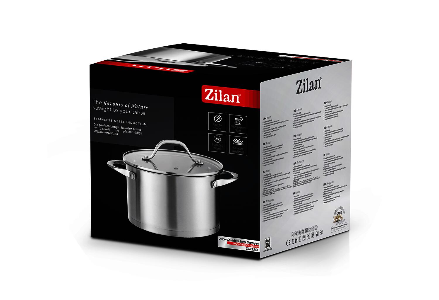 Oala Zilan ZLN1351 are diametrul de 20 cm, capacitatea 3L si este construita din otel inoxidabil. Capacul cratitei este din sticla securizata rezistenta la temperaturi ridicate si are gaura pentru iesirea aburului. In cratita pe peretele interior se poate observa ca aceasta este gradata.Performanta oalei se datoreaza materialelor de buna calitate folosite la construirea ei. Manerele oalei sunt construite din otel inoxidabil si acestea sunt prinse de oala prin nituri.Datorita materialelor de calitate folosite, oala reuseste sa fie rezistenta la zgarieturi, usor de curatat si compatibila pentru a fi spalata la masina de spalat vase. De asemenea cratita este compatibila cu sursele de incalzire: gaz, electric si inductie.