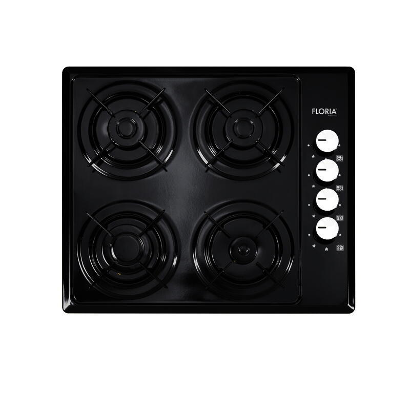 Plita incorporabila Floria ZLN-1864 GPL si Gaz natural, 4 ochiuri, duze de schimb incluse, aprindere electrica, Negru 60x50x6cm
