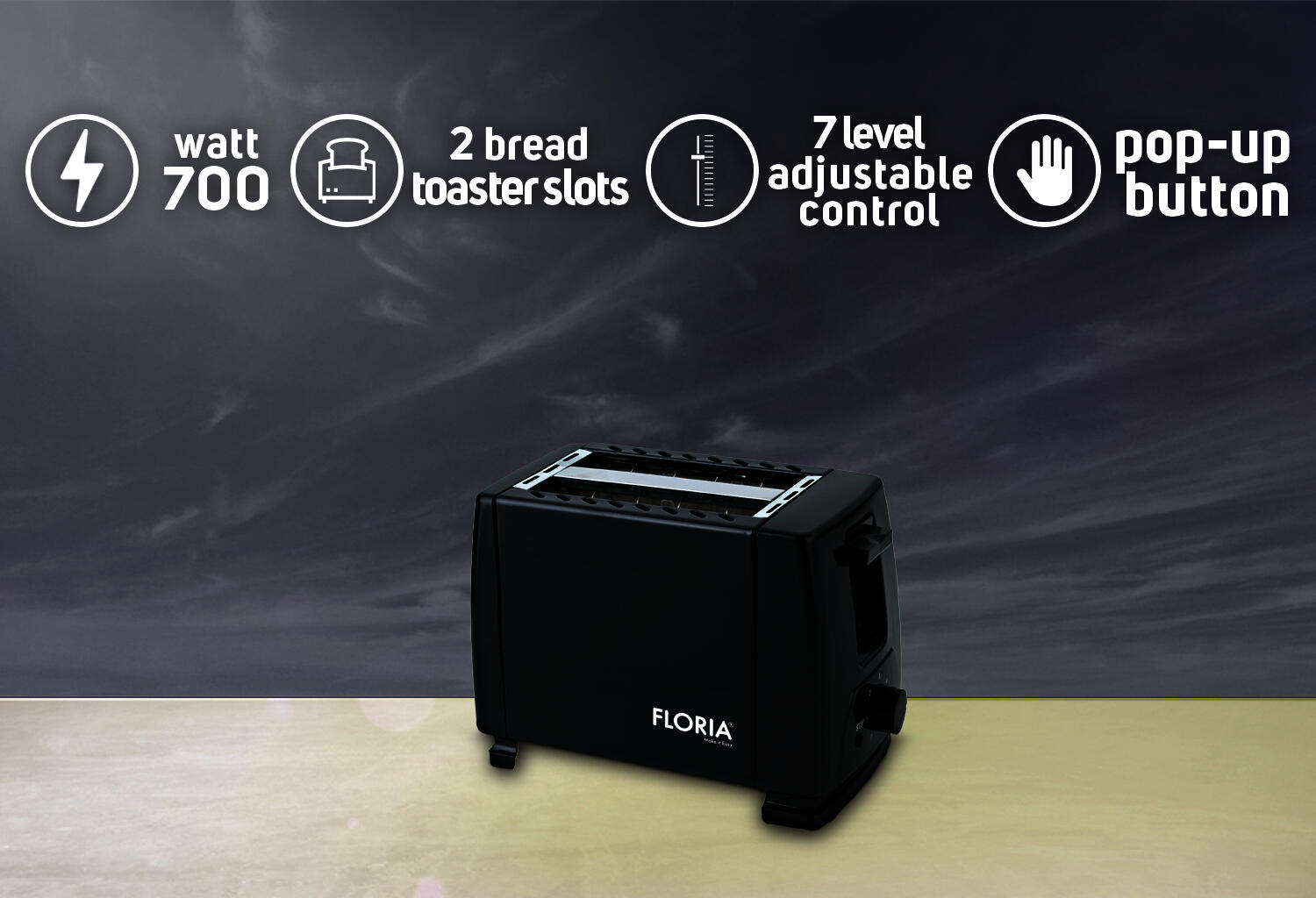 Prajitor de paine Floria ZLN1826 Negru, 700W, 7 nivele de control al temperaturii, buton de oprire
