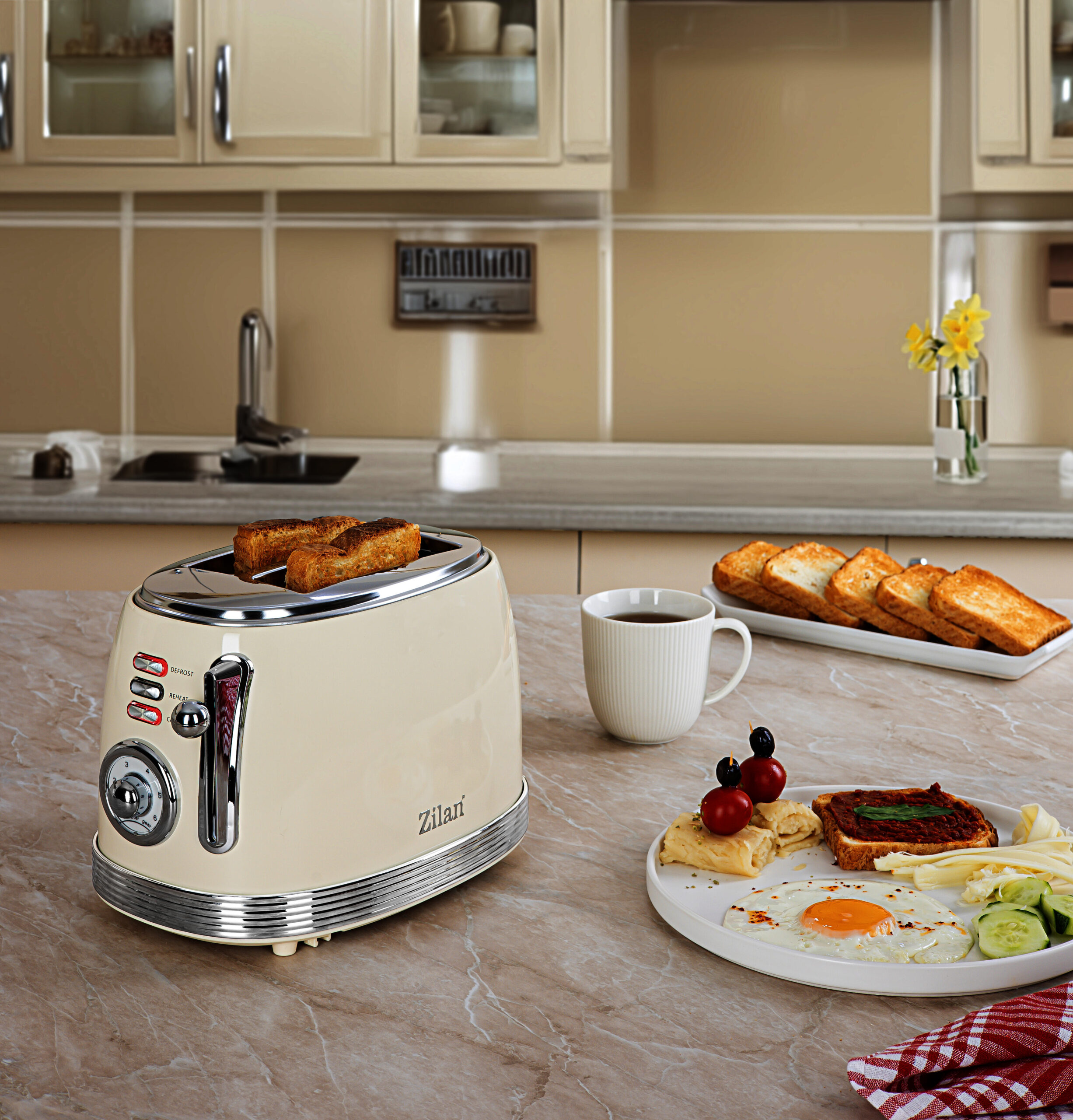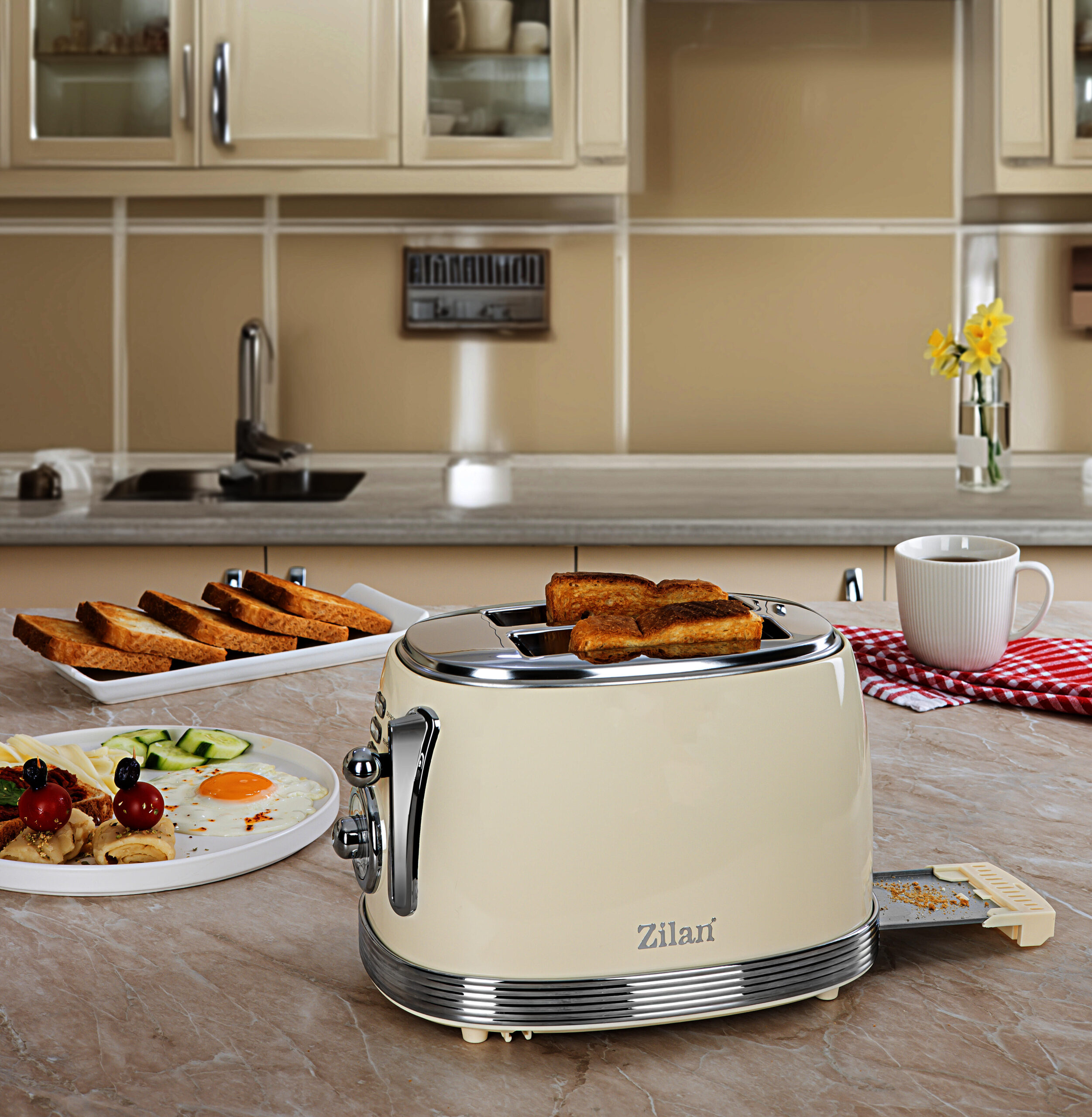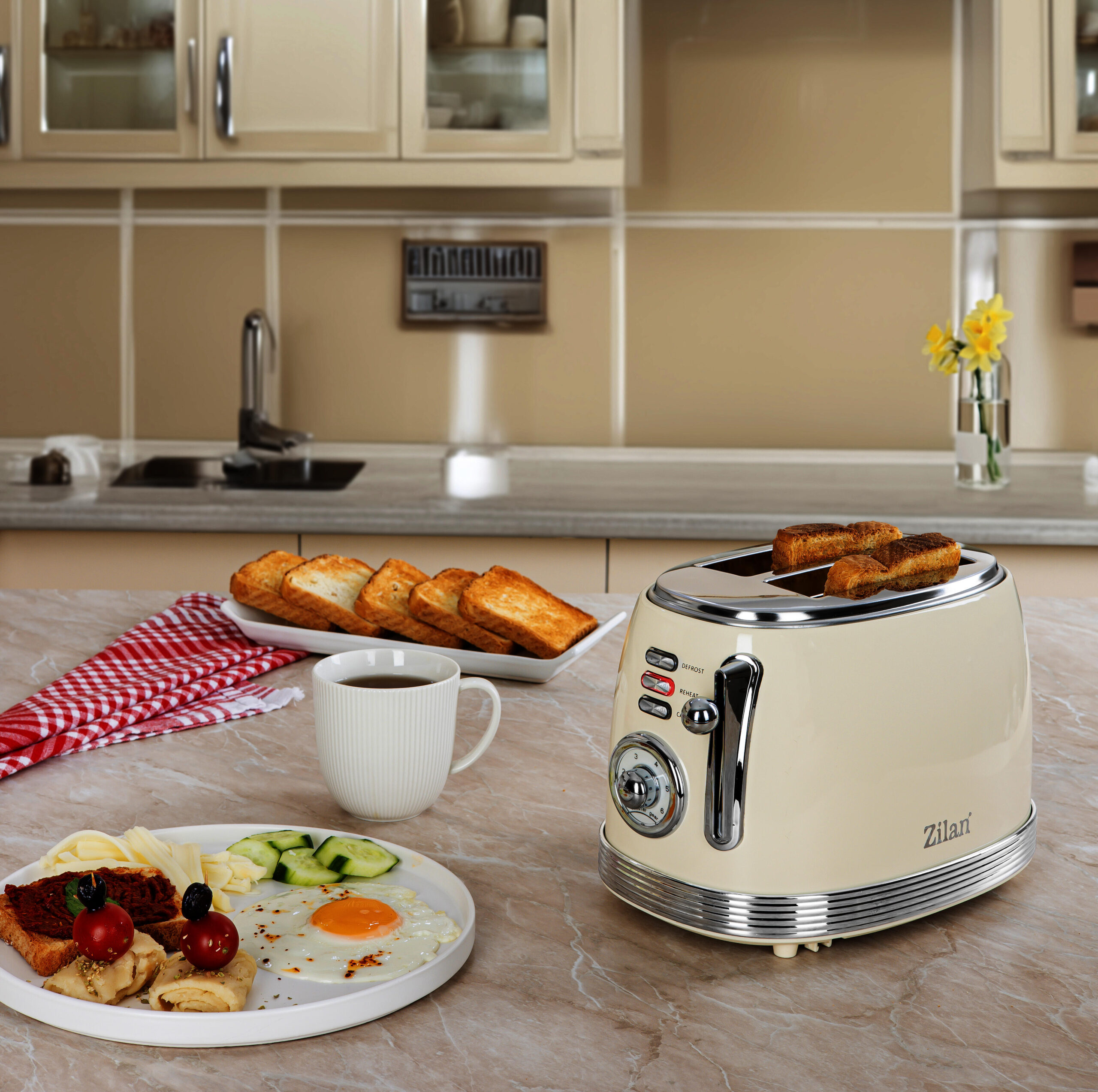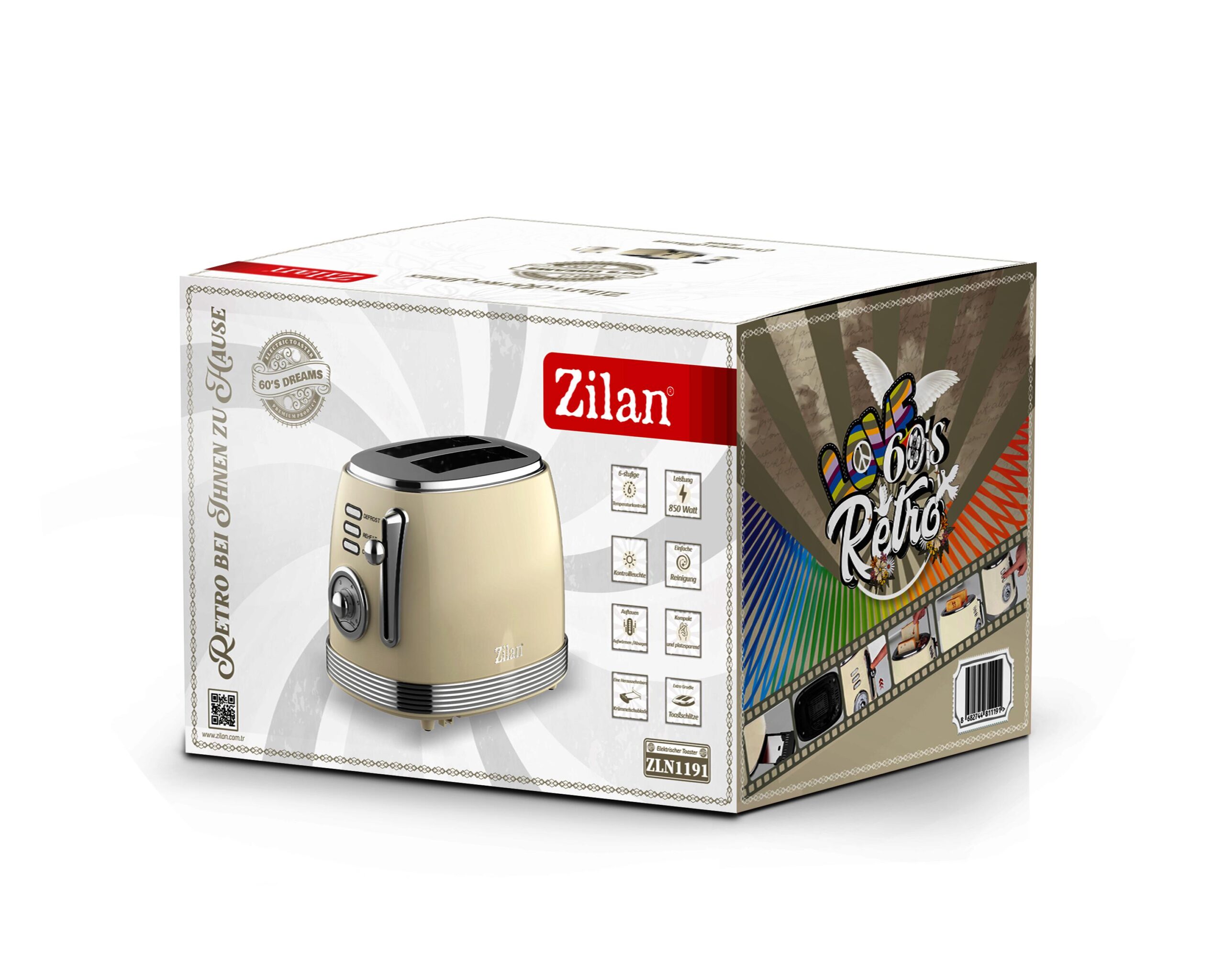 Prajitor de paine Retro Zilan ZLN1191, 2 felii de paine, 850W, 6 trepte de temperatura si timer, dezghetare, reincalzire, picioruse antiderapante