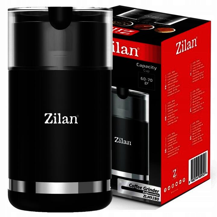 Rasnita electrica Zilan ZLN9280 pentru cafea, lame din otel, corp din plasticCarcteristici:Putere 150WCorp din plasticLama de macinat din otel inoxidabilCapacitatea cupei 60-70g