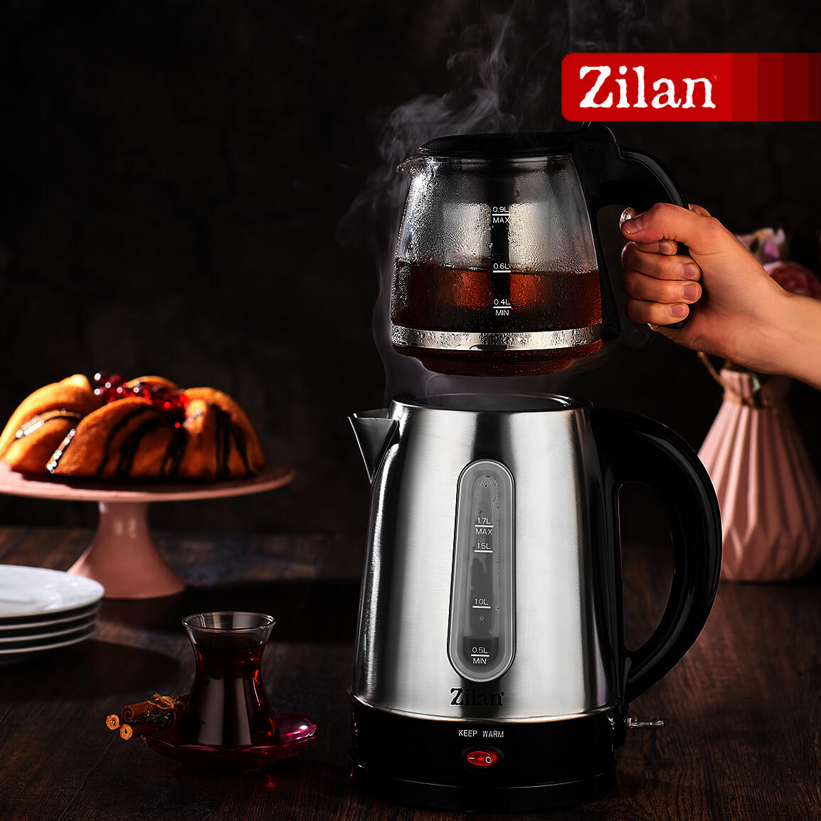 Set fierbator electric+ceainic FLORIA ZLN-3581,Inox/Negru Putere 2200W,