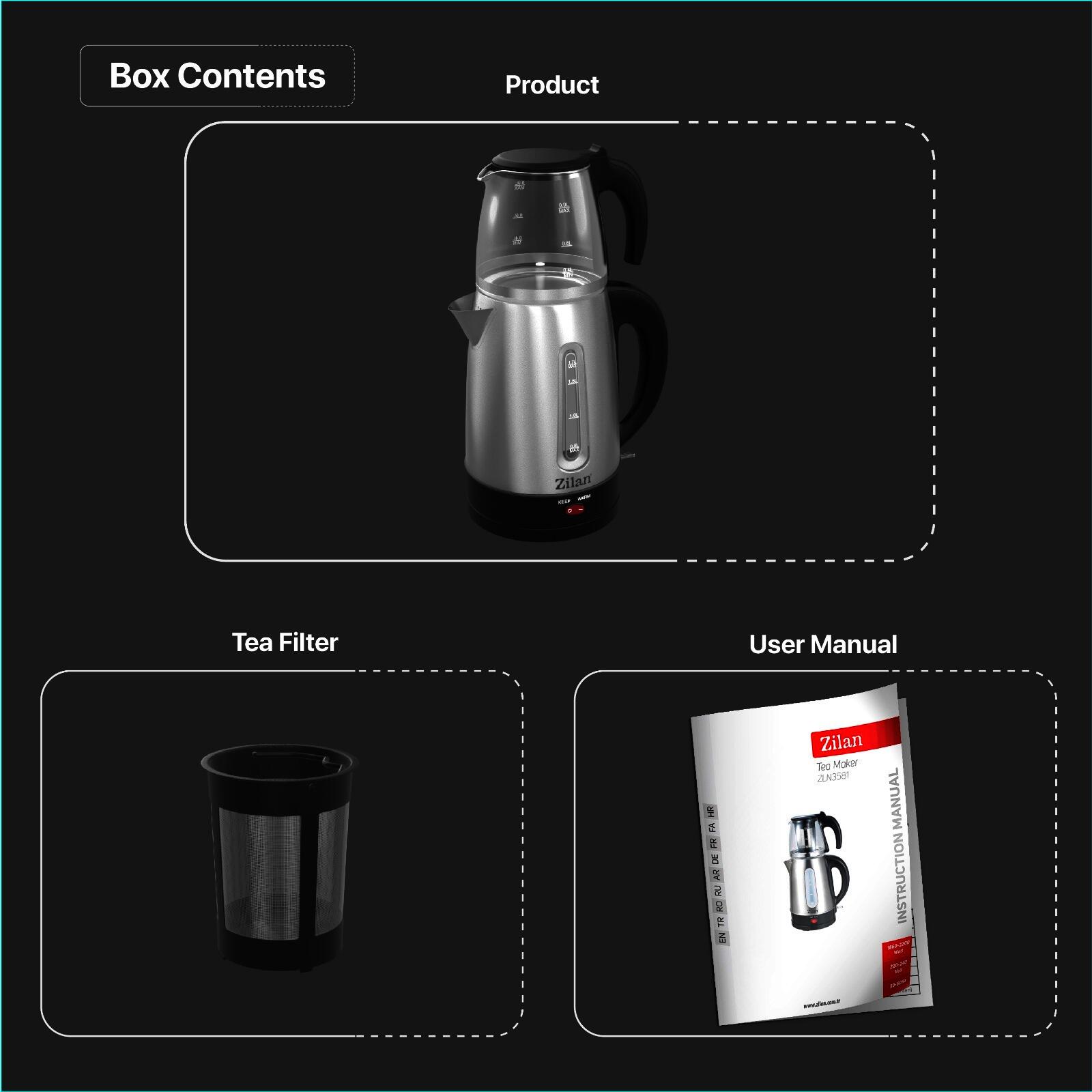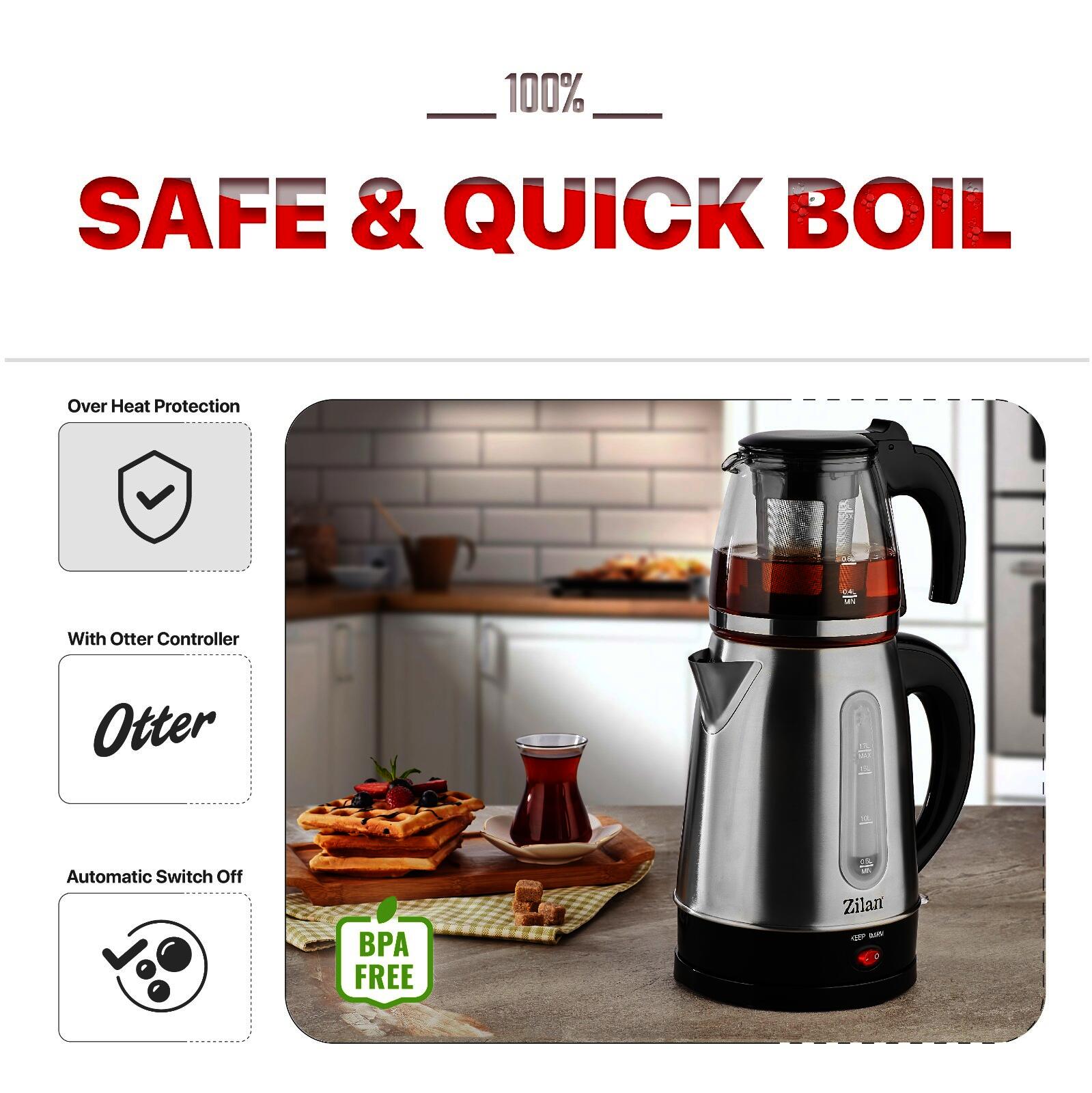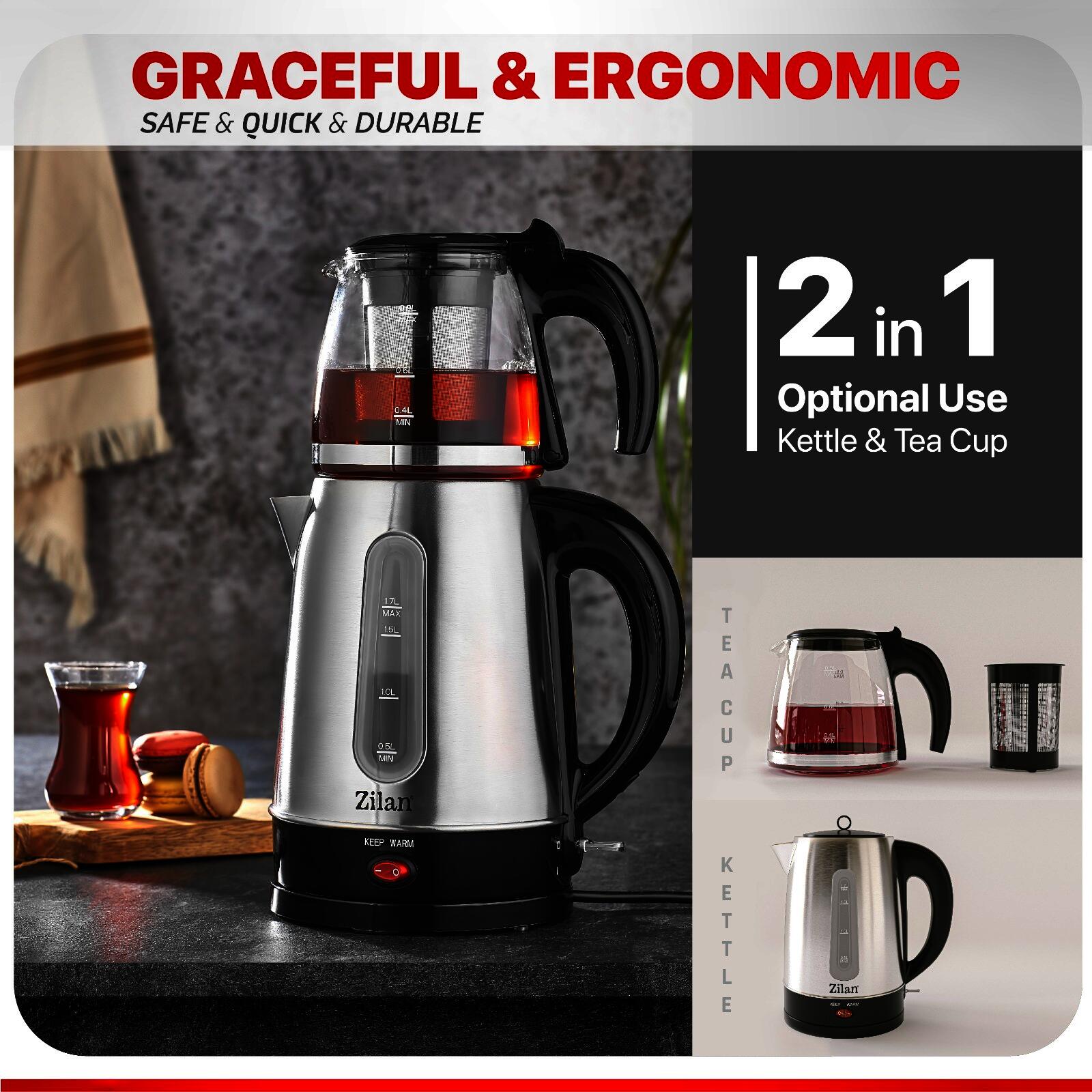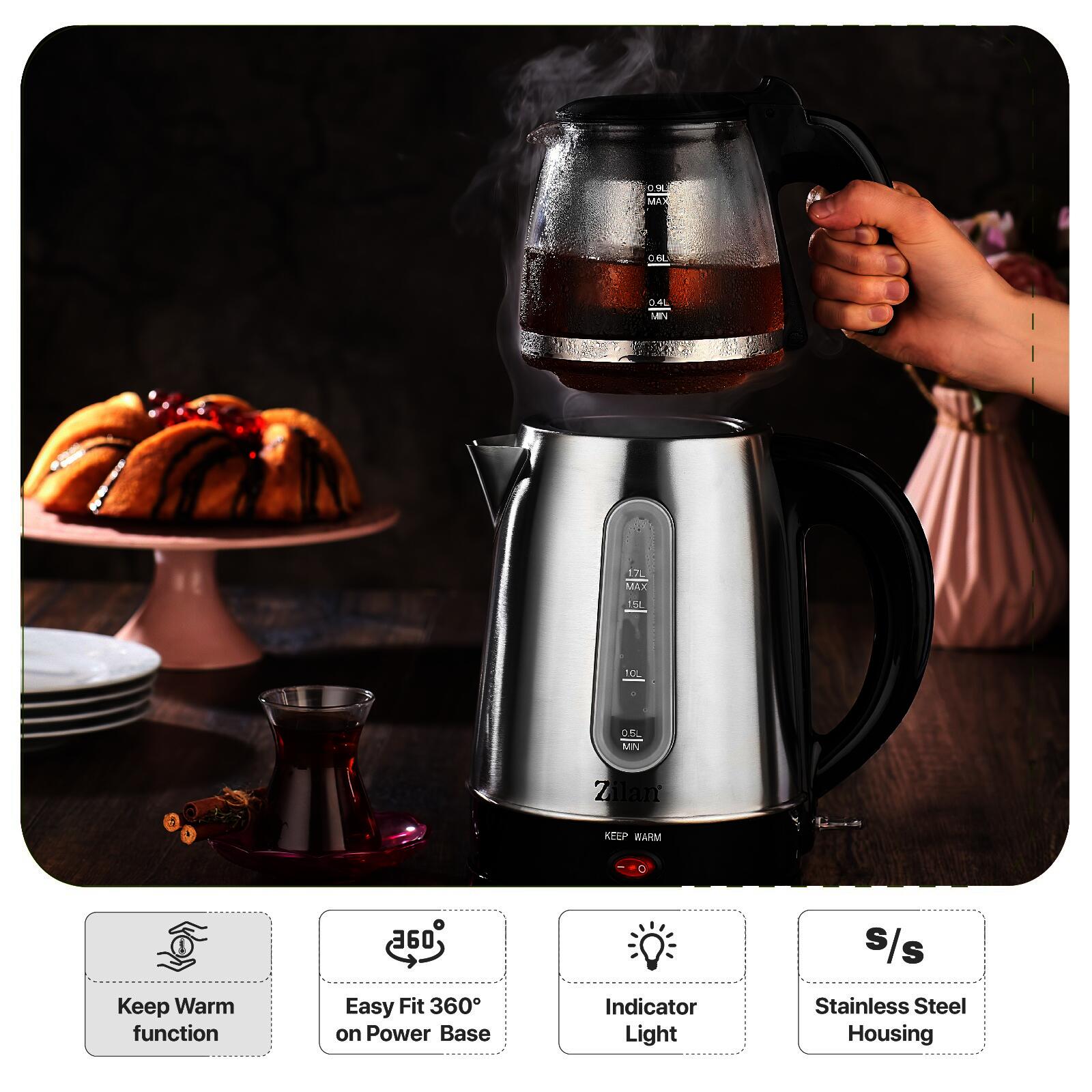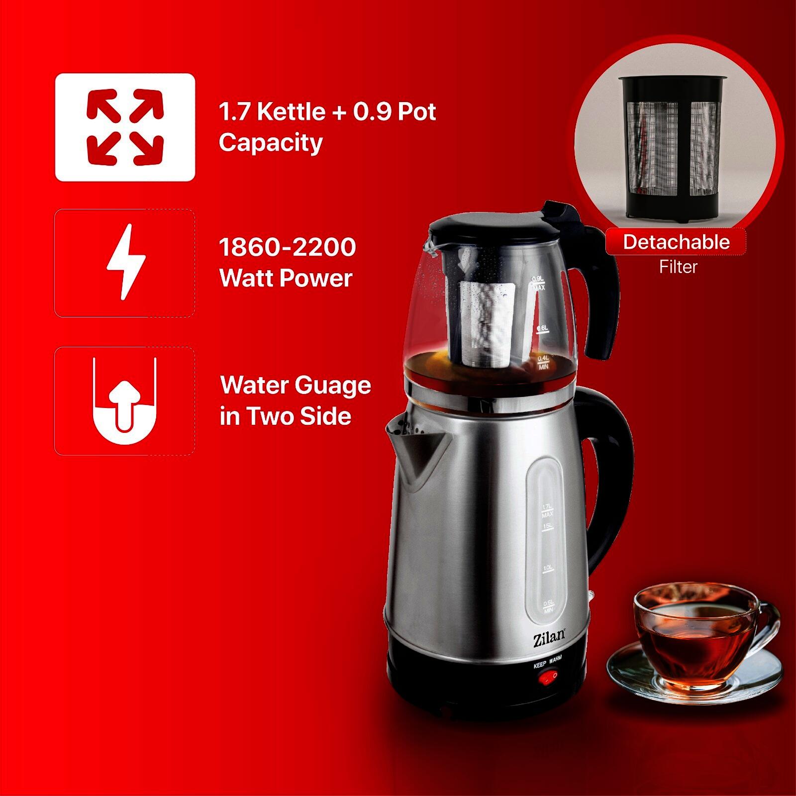 Fierbator detasabil din inox 1.7L, putere 2200W, ceainic sticla cu filtru detasabil pentru ceai 0.9L, indicator luminos, protectie supraincalzire, element incalzire otel inoxidabil ascuns.CARACTERISTICI PRINCIPALECantitate cana fierbator1.7 lUtilizareRezidentialPutere2200 WMaterial carcasaInox