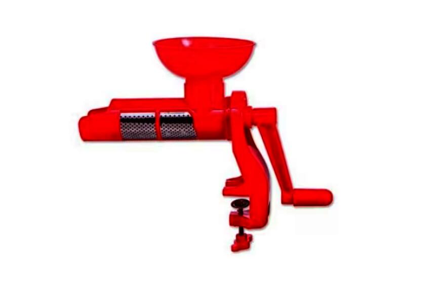 Storcatorul manual de rosii, cu sita si cuva colectoare, este realizat din material plastic de uz alimentar si otel inoxidabil. Il puteti utiliza pentru a prepara sucuri si piureuri din fructe moi si va va usura munca, in special la pregatirile de toamna. Este prevazut cu dispozitiv de fixare pe masa si are o capacitate de stoarcere de 10kg/ora. Mod de utilizare: Fixati storcatorul pe masa sau pe o alta suprafata neteda si fixa cu ajutorul surubului de prindere. Puneti un bol sub el, in dreptul partii perforate, pentru colectarea pastei de rosii, si, un bol la capatul lui pentru colectarea cojilor. Se pun rosiile (taiate bucati) in palnia storcatorului si se invarte de manivela. In cazul in care storcatorul se blocheaza, rasuciti manivela in sens invers.