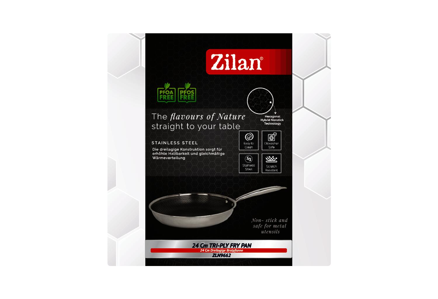Tigaia pentru prajit Zilan ZLN9662 poate fi alegerea ta ideala in a alege o tigaie pentru a gatii, aceasta are o suprafata care nu lipeste mancarea, rezistenta la zgarieturi si usor de spalat, chiar si la masina de spalat vase!Aceasta este construita din inox rezistent, aceasta se foloseste de tehnologia Hexagonal Hybrid Nonstick Technology, are diametrul de 24cm si poate fi folosita cu usurinta si cu ustensile de metal/inox, etc.Tehnologia Triply se refera la constructia tigaii, aceasta fiind formata din 3 straturi de material. Primul fiind inox, cel din mijloc fiind aluminiu apoi ultimul strat, inox. Aceasta tehnologie confera o calitate superioara acestei tigai si o durata prelungita de viata. De asemenea aceasta tehnologie ajuta sa ofere o retinere maxima de temperatura.Compatibila pentru toate sursele de gatire, inclusiv plita cu inductie! Caracteristici:DesignPlacutMaterialInox si aluminiuTehnologiiTriply, Hexagonal Hybrid Nonstick TechnologyFunctiiUsor de spalat, permite gatirea la orice sursa de gatire( inclusiv plita inductie ), posibilitate spalare la masina de spalat vase, strat antiderent, strat cu protectie impotriva zgarieturilor, maner nituitDiametru24 cmProducatorZilanCod produsZLN9662