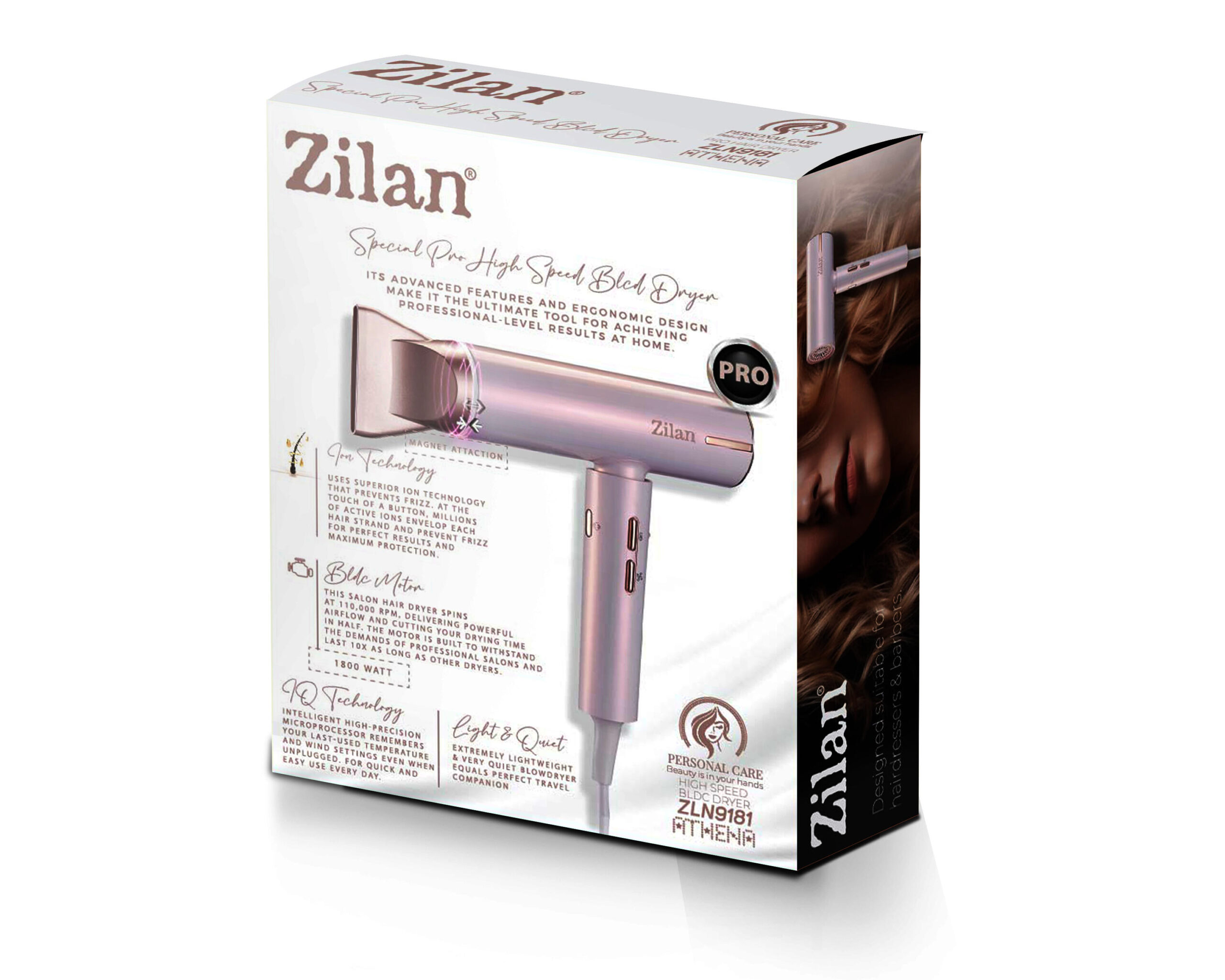 Uscator de par Zilan ZLN9181, tehnologie IQ, 3 trepte de viteza si temperatura, Functie ionica, 1800W