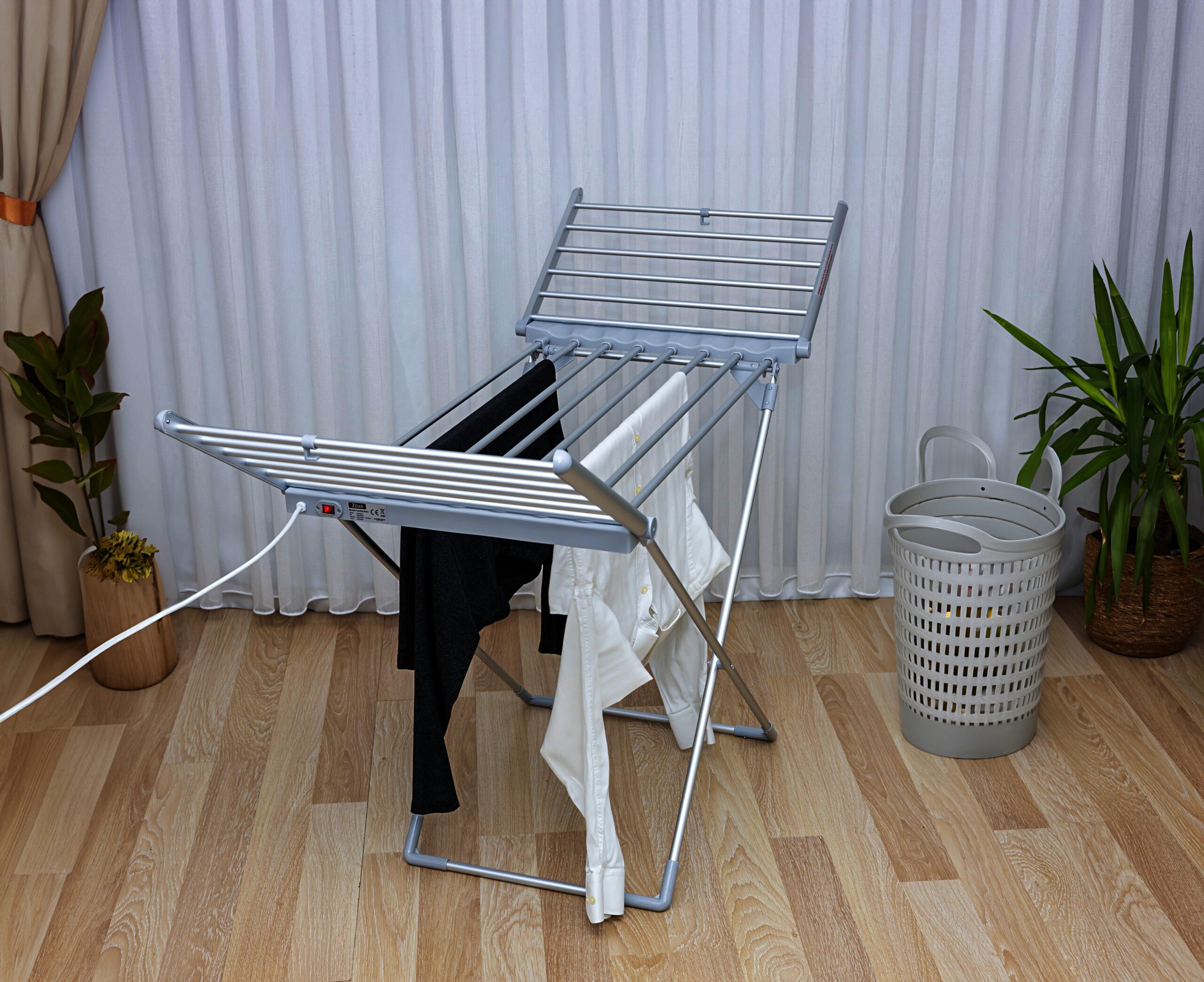 Uscatorul de rufe electric Zilan ZLN2060 are o suprafata de utilizare de 12m, inaltime ajustabila, model care permite sa fie pliabil, construit din aluminiu inoxidabil, Putere 230W. 2 suporturi pentru haine mici si delicate. Temperatura de functionare sigura 45-55° C. Nivel de protectie: IPx1, consum redus de energie eficient din punct de vedere economic.Uscatorul are 20 de tuburi de incalzire, spatiul total de utilizare si de agatare al hainelor este de 12m, cablul pentru alimentare are o lungime de 1,4m si capacitatea maxima este de 15kg. Pentru o depozitare mai usoara uscatorul este pliabil, acesta cand se pliaza ocupa mai putin loc si poate fi depozitat fara ca sa ocupe multe spatiu.Uscatorul de rufe electic Zilan ZLN2060 functioneaza la 220-240V, 50-60Hz, avand o putere maxima de 230W.